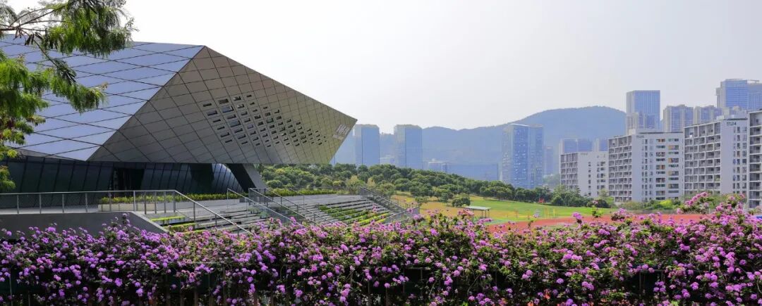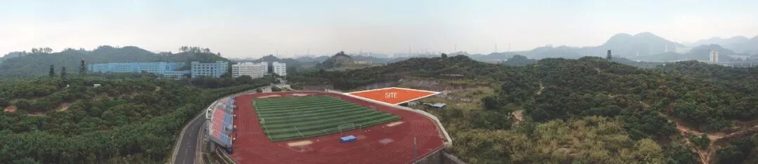 南科大体育馆依托背后山丘,水平伸展,硕大的屋盖沿一块巨岩的山体滑下,悬在半空,向西伸出大片屋檐,在当地炎热的气候下辟出一方阴凉。从操场望去,大屋盖压得很低,且不对称,强调动感,通向操场的大台阶(看台)承担体育馆的基座,由V形混凝土结构支撑,台阶中间开敞透光,下部光线充足,为非正式的运动空间, 透过这一台阶,体育馆与运动场结合为整体。