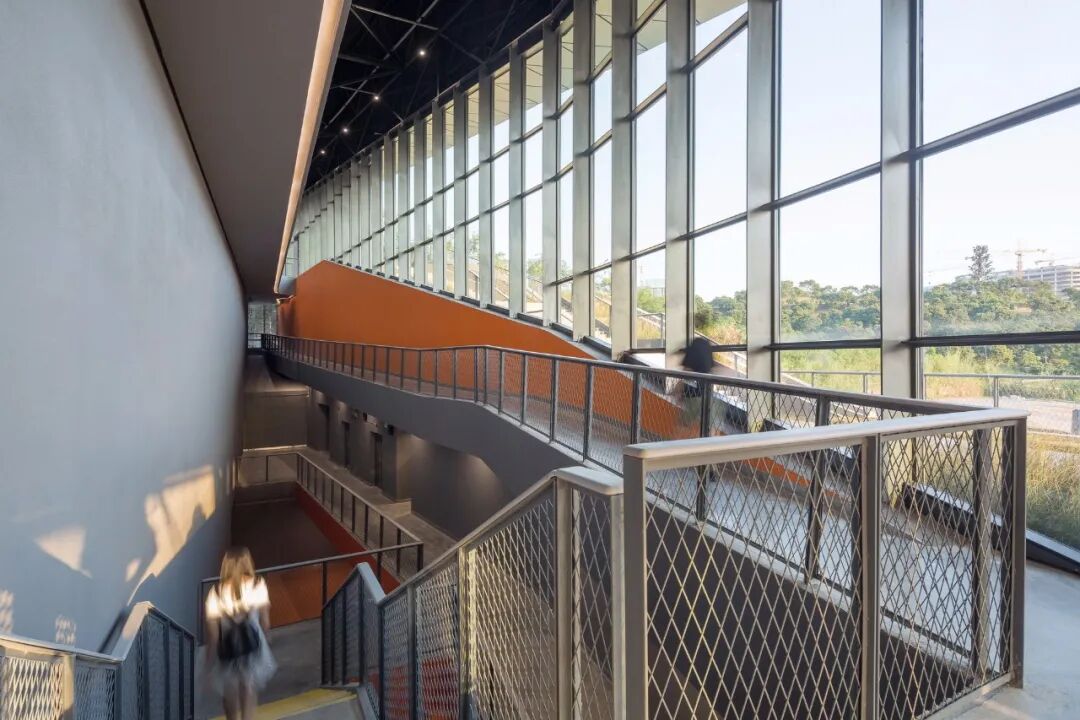 The connected 150-meter-long aerial looping track surrounds the main venue and continuously shuttles between the stadium and the lounge, triggering various interesting space explorations and creating a new jogging experience. If you want to continue to exercise, you can also walk from the runway to the outdoors through the mountaineering exit, reaching the mountain jogging track or the landscape stairs, and eventually return to the starting point to finish a closed sports space circuit.