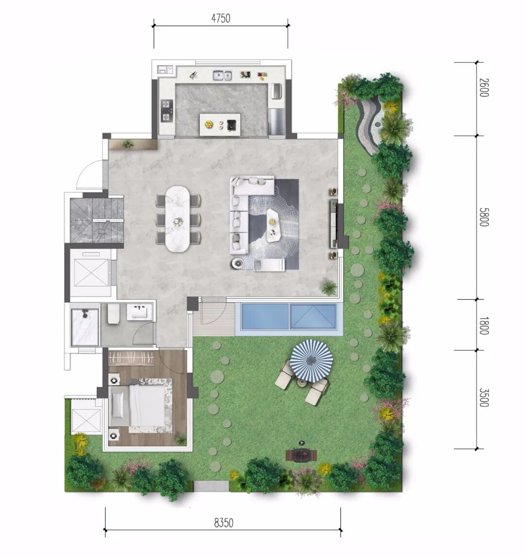 建面约为145-245㎡极致轻态墅,实现超300㎡独栋体验。一字型和L型叠墅两种产品,L型叠墅升级墅居体验,庭院围合度最高可达到180°,利用率更高,令产品公摊趋近于零,同时将叠墅常见的户与户之间的对视干扰降到最低,私密性更强。