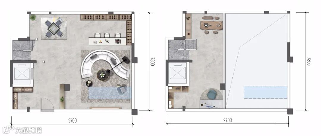 LDK客餐厅一体化的设计,客厅开间与进深均达到了约0.618的黄金分割比例,打造出了近60㎡大平层级的会客厅,居家会客。一个完整的8.35米*5.8米横厅,恰到好处的开间和进深比例,打造了室内公区的开阔尺度。