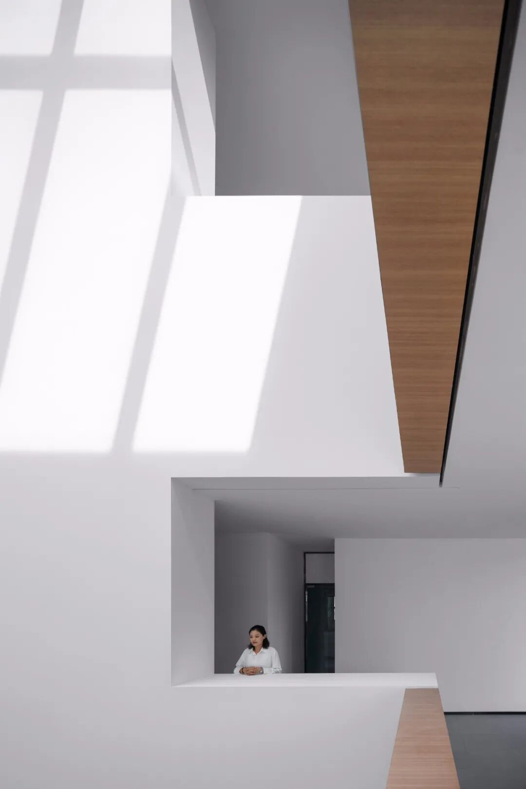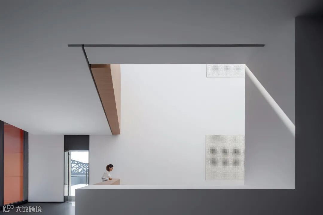 建筑师将平面打开,重构原有的交通核,电梯、卫生间、共享空间等巧妙植入,并在核心区打造贯通的天井空间,利用垂直的天井引入自然光线,加深自然与建筑,时间与空间之间的互动。