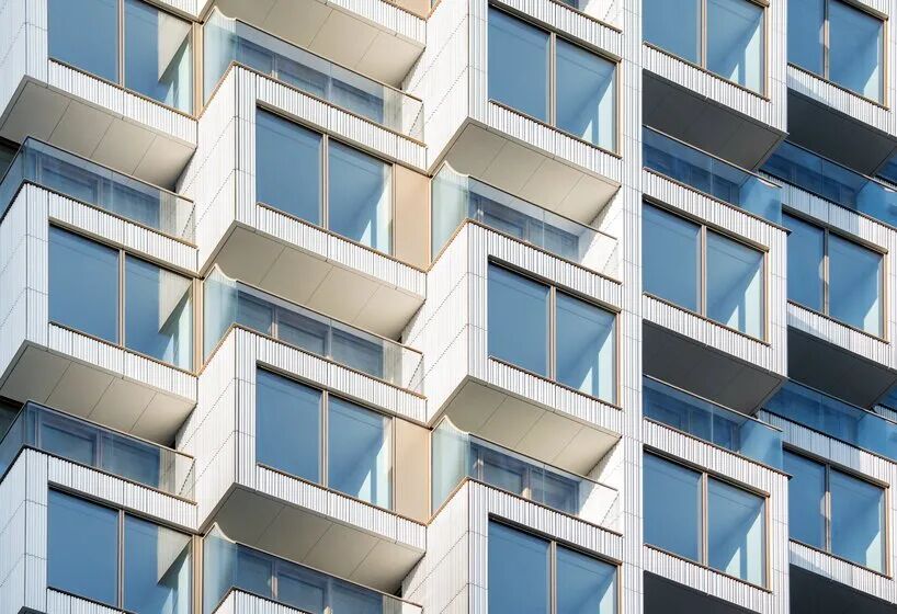 the new building comprises a total of 483 luxury apartments as well as a range of on-site amenities. the program is organized over three sections: spacious loft style apartments on floors 02-09; cluster residences layered to maximize space in the mid-section; and large bay units toward the top of the building. there are also three apartments known as the ‘level 32 sky lofts’ on the 32nd floor designed by bowler james brindley, who has also created the interior of the loft style apartments. the cluster and bay apartments are designed by goddard littlefair.