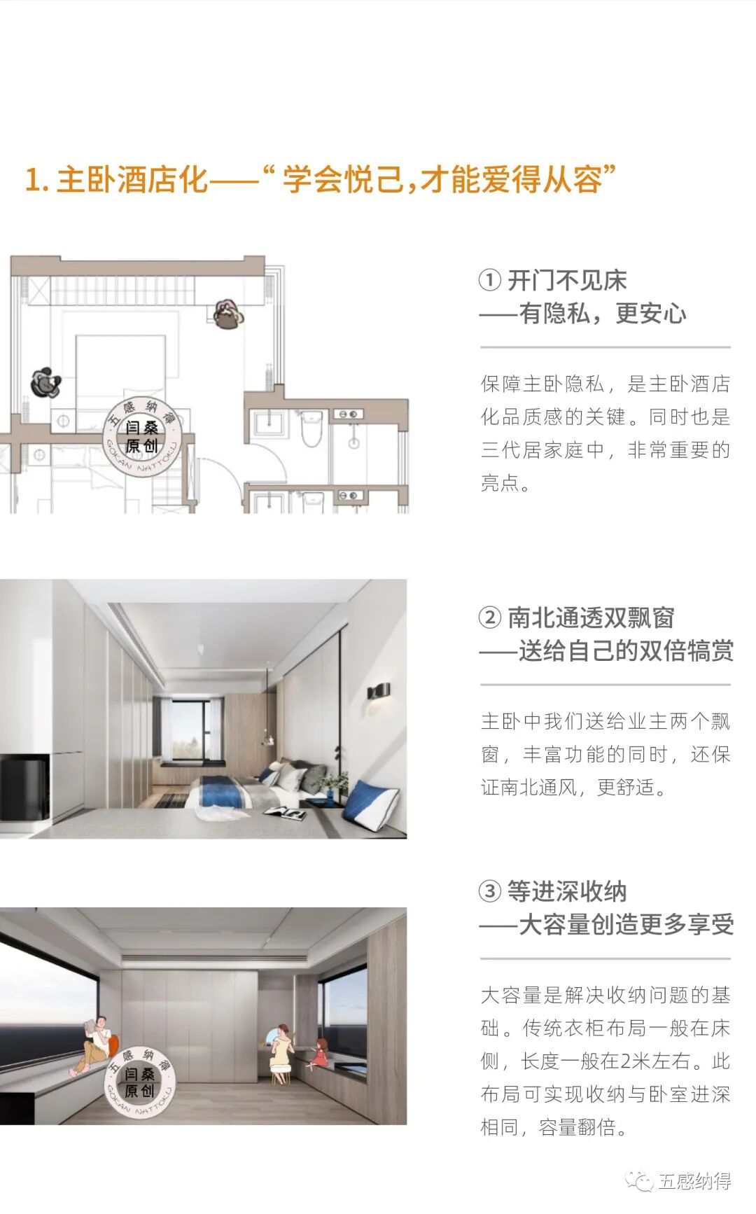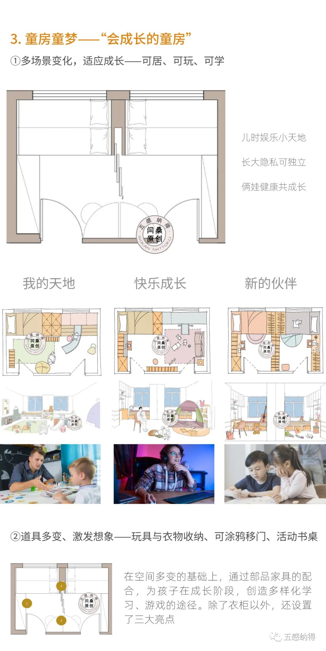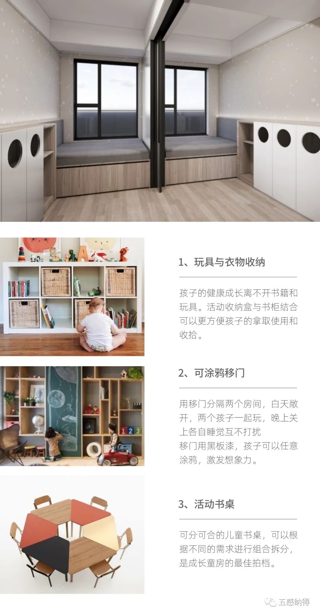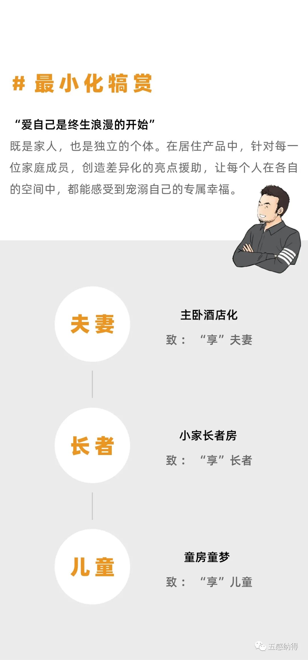 “未来”住宅产品设计:五感纳得,作为开发商与业主间的桥梁,代言业主与开发商进行对话;以居住需求为出发点,从建筑源头切入,让开发商的传统户型空间呈现更多可能性。参与融创、万科、绿城、金地、华润、远洋、华夏等开发商住宅产品线的研发和设计工作。通过住宅产品ip策划、生活场景设定、户型营造设计、收纳管理设计、体验样板间设计、产品价值传递6大流程,为开发商“未来”住宅提供全套解决方案。