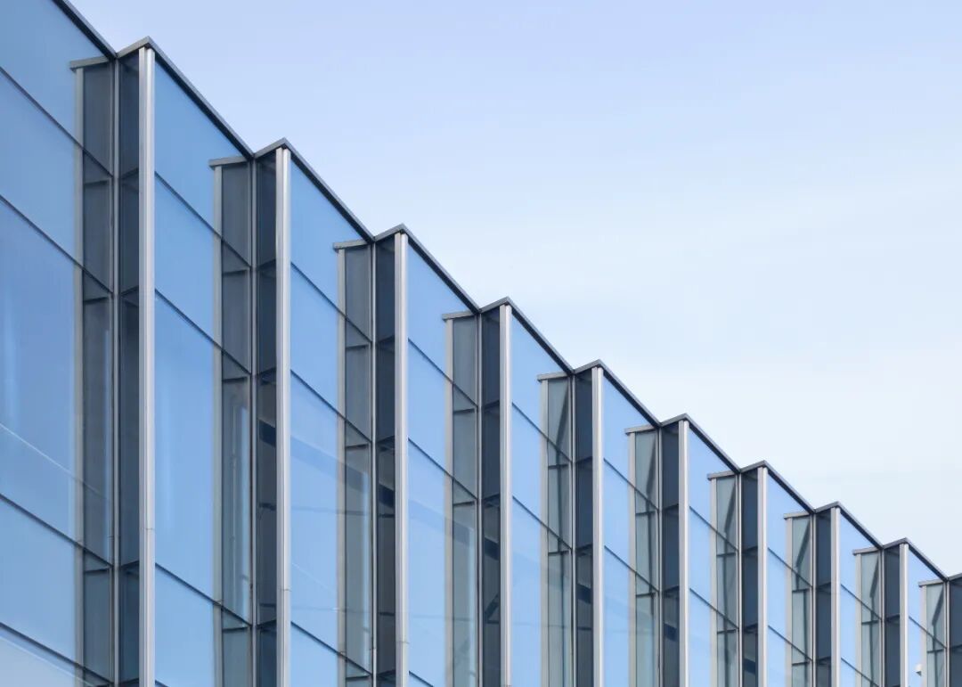 办公楼租户以金融、银行、证券为主,建筑设计上以“金融中心”为基调,整体造型简洁、大方,不追求浮夸的形态,反映了高效、沉稳的金融企业的特质。塔楼外表皮统一采用全玻璃幕墙体系,增加项目的整体性。裙房使用玻璃+石材的幕墙体系,既呈现了材质的虚实对比,同时强调西侧地面及地下出入口,便捷的把周边人流引入项目内,暖色石材更增加了项目的亲和力。