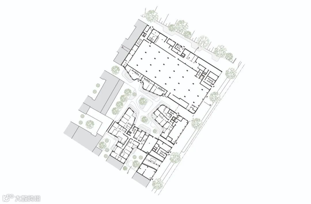六个相连的建筑的内部是一个有趣的绿色景观,形成了一个连续的同时变化的内部空间。景观屋顶露台和周围的私人地块结合在一起,在充满活力的城市环境中形成了一个宽敞的地方。