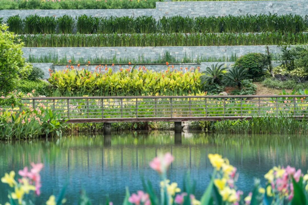 1.针对场地高差大的问题,将潜流湿地的设计结合场地高程进行改造,将潜流湿地改造为台地形式,一方面消化基地内8米的高差,另一方面最大限度地扩大水体面积,使得湿地的去污效能与景观展示功能都发挥到最优。