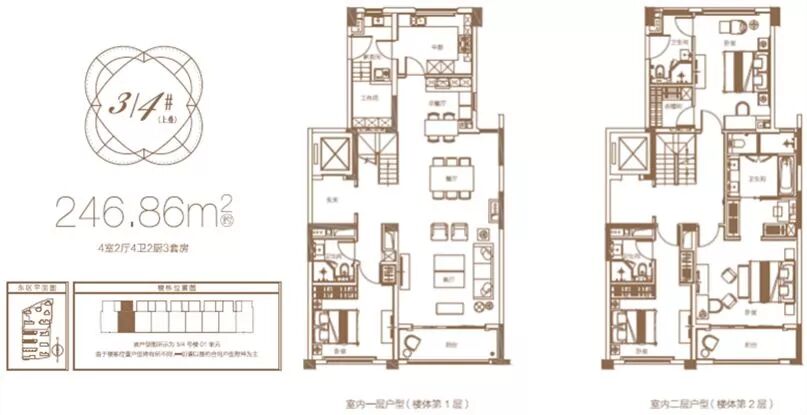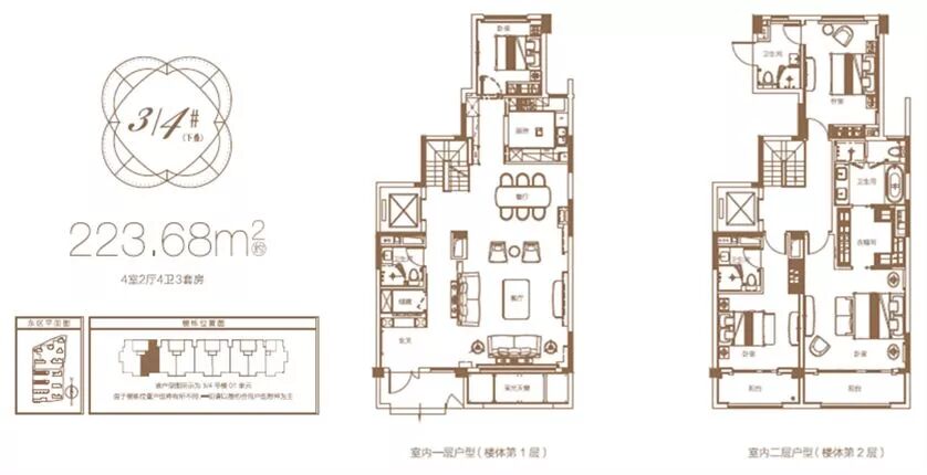 上叠排建筑面积约127㎡,最大可使用面积约188㎡,上叠排有面积约20㎡的花园,产品位于3层、4层并赠送阁楼,一共可做4房。