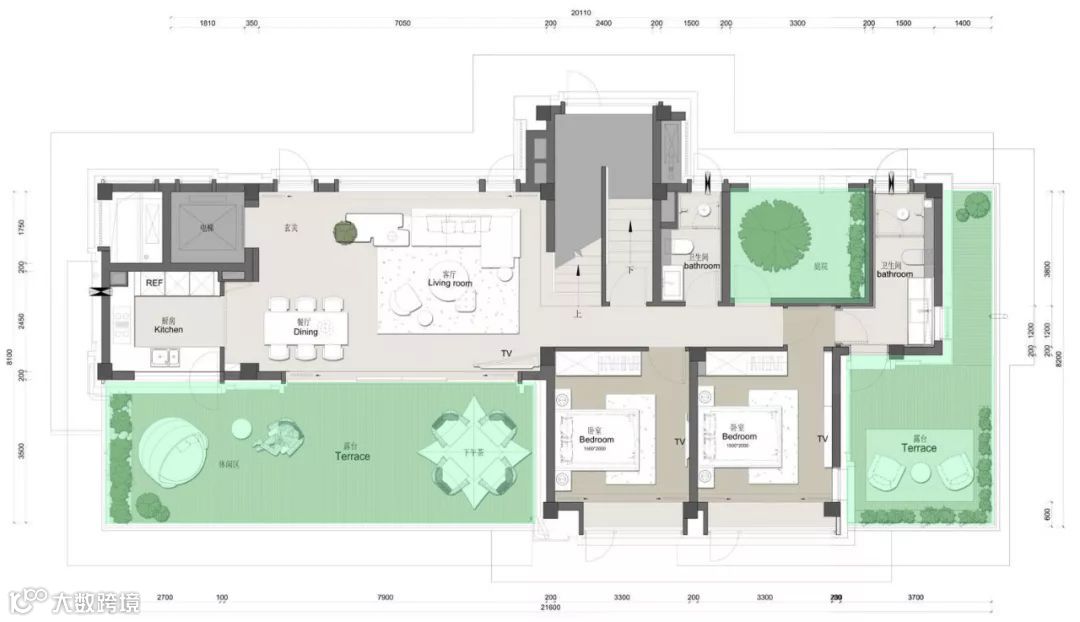 由于其独立入户的属性,无论上中下叠都可以占有一层花园的一部分,可谓是有天有地~