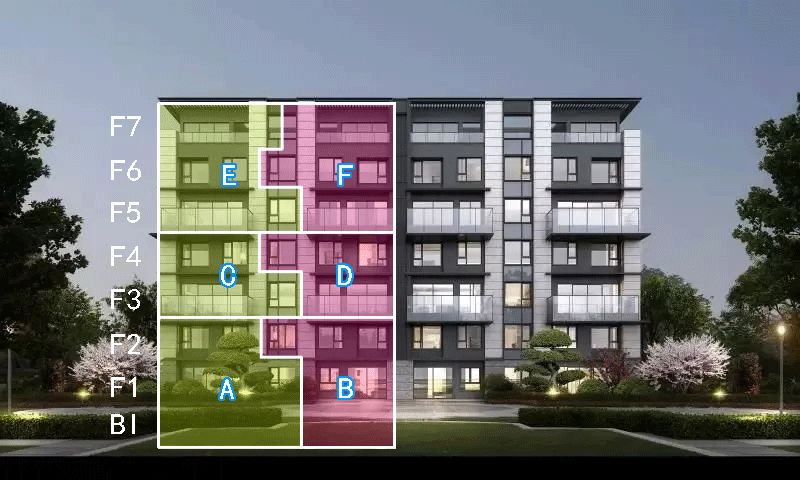 上叠产品,垂直5重空间。北向首层独立入户,部分独立地下室空间连通公共车库,露天平台,边套主卧约270°环形露台,高附加值。