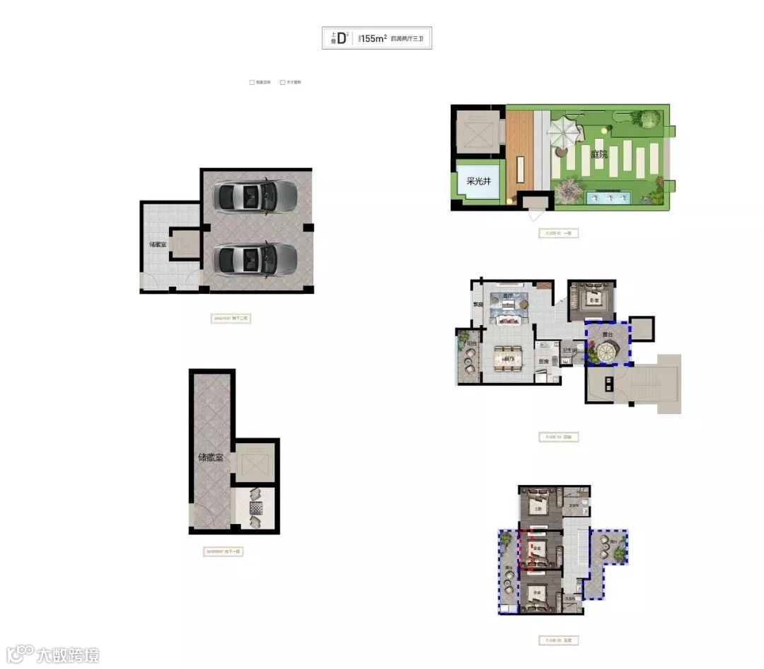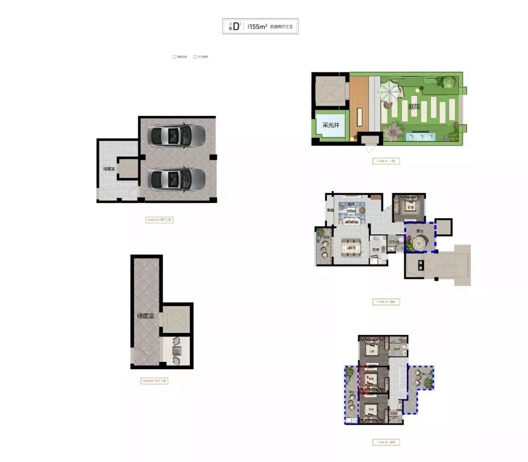 藏珑大境真的做到了叠墅向叠院的产品进阶。从示意图中能看到,上中下三叠,基本上保证了每个户型至少有3个南向开间,而上叠D户型,甚至做到一墅5开间朝南。