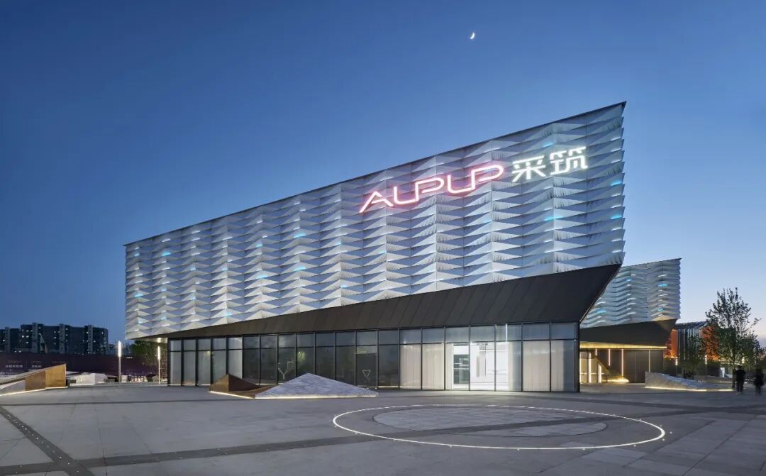 三个由穿孔的折叠铝板建构而成的会呼吸的结晶立面体——采筑展厅“能量盒”,其建筑体形态分别代表了科技之光、自然之光和人文之光的寓意转译。建筑师以光子晶体——“结晶、裂变、模组化”的元素演绎,来体现采筑“合-同行业力量”→“聚-产业资源”→“变-科技赋能产业加速核动力”的能量特徵,并通过提升“能量盒”创造了多个入口以供参访者从街区穿行,从而创造了一个聚集和互动的场所。