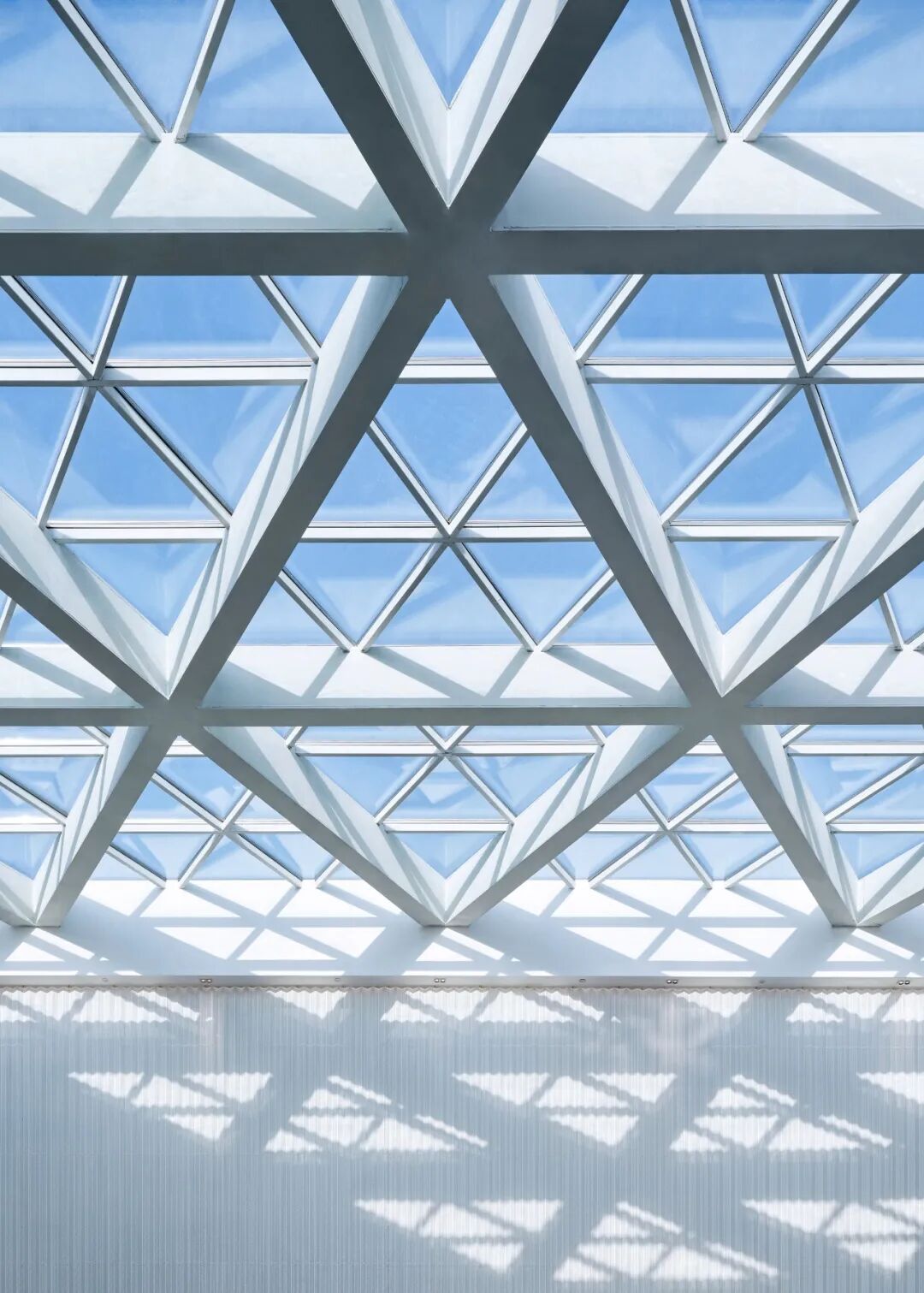 而独特通透采光的天窗设计在打破空间高度限制的同时也使其拥有了更具温度的呈现,极简线条融汇的层叠、不同材质的交织和随着时间变幻的光线在设计中层迭,创造出多元共生的全新空间美学和丰富流畅的室内空间体验。