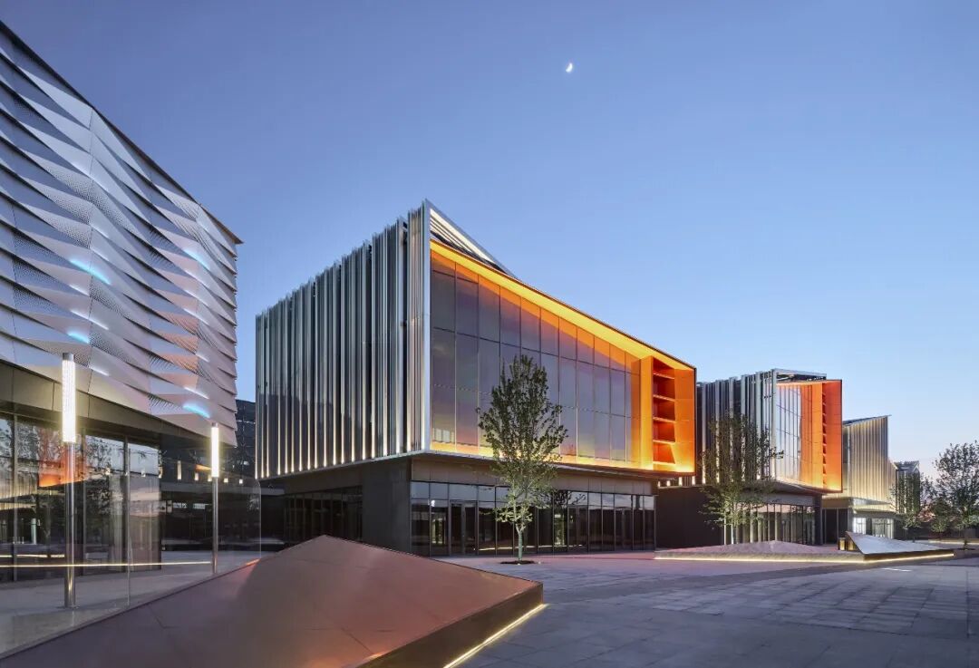 其中,光子结晶形态的建筑外牆采用了多面铝模组化面板的阵列系统设计,有效地为建筑提供了外牆双层的隔热功能,实现了于夏季遮阳和于冬季最大限度地减少热量损耗的功能;同时,模组化建筑立面系统也设计为开放与多孔,以实现更好的自然通风。
