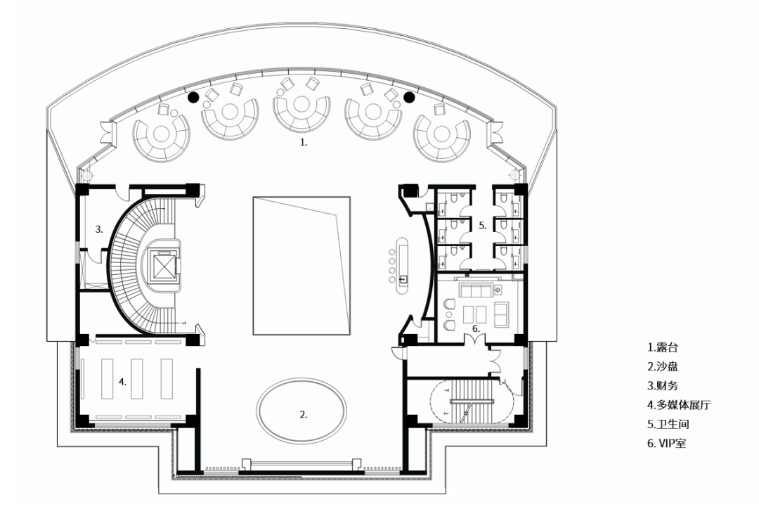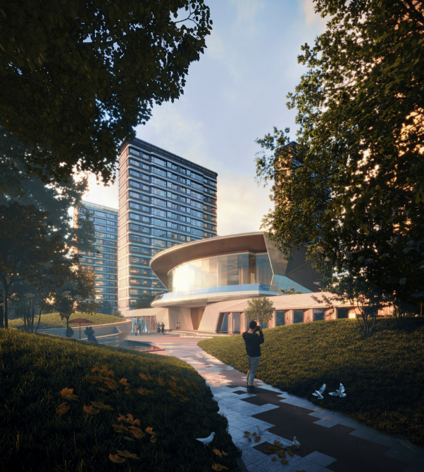 通透的开放式空间与轻盈立面融为一体,12m高的挑空大堂框出中庭景观,圆形光顶将光线聚集于室内,折射出明与暗的形态变化。自我生长的空间想象于穹顶中冲破而出,照进生活的各个角落。以景述情,承载未来生活的希冀为第二重空间。