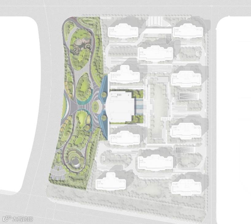 建筑在城市中生长变化,改变城市,亦被城市所影响。我们试图运用地域与文脉的统一性与在地性表达,提取以海滨城市为起源的“轮船、方舟”等形象语汇植入其中,以“游轮在绿谷林海启航”为空间线索,通过波澜起伏的立面曲线重新定义城市天际线,呼应天津海上门户的港口文化。