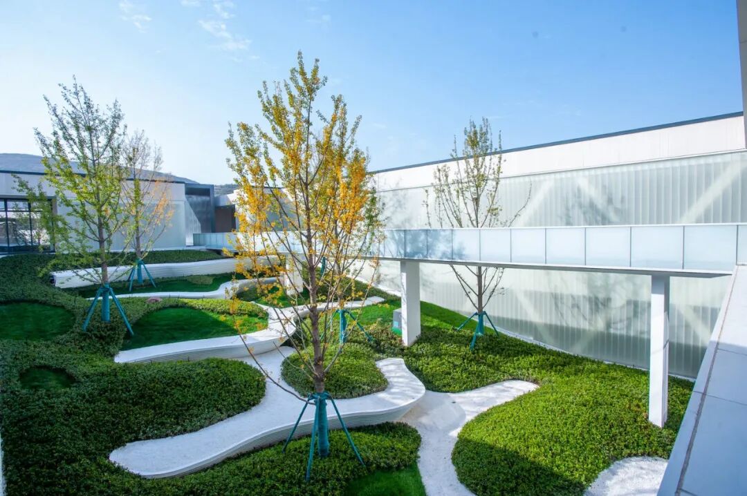 该项目摒弃了传统的“五重景观”,采用现代简约绿化造景手法,增加了置石和地被植物造型,提升了景观效果。