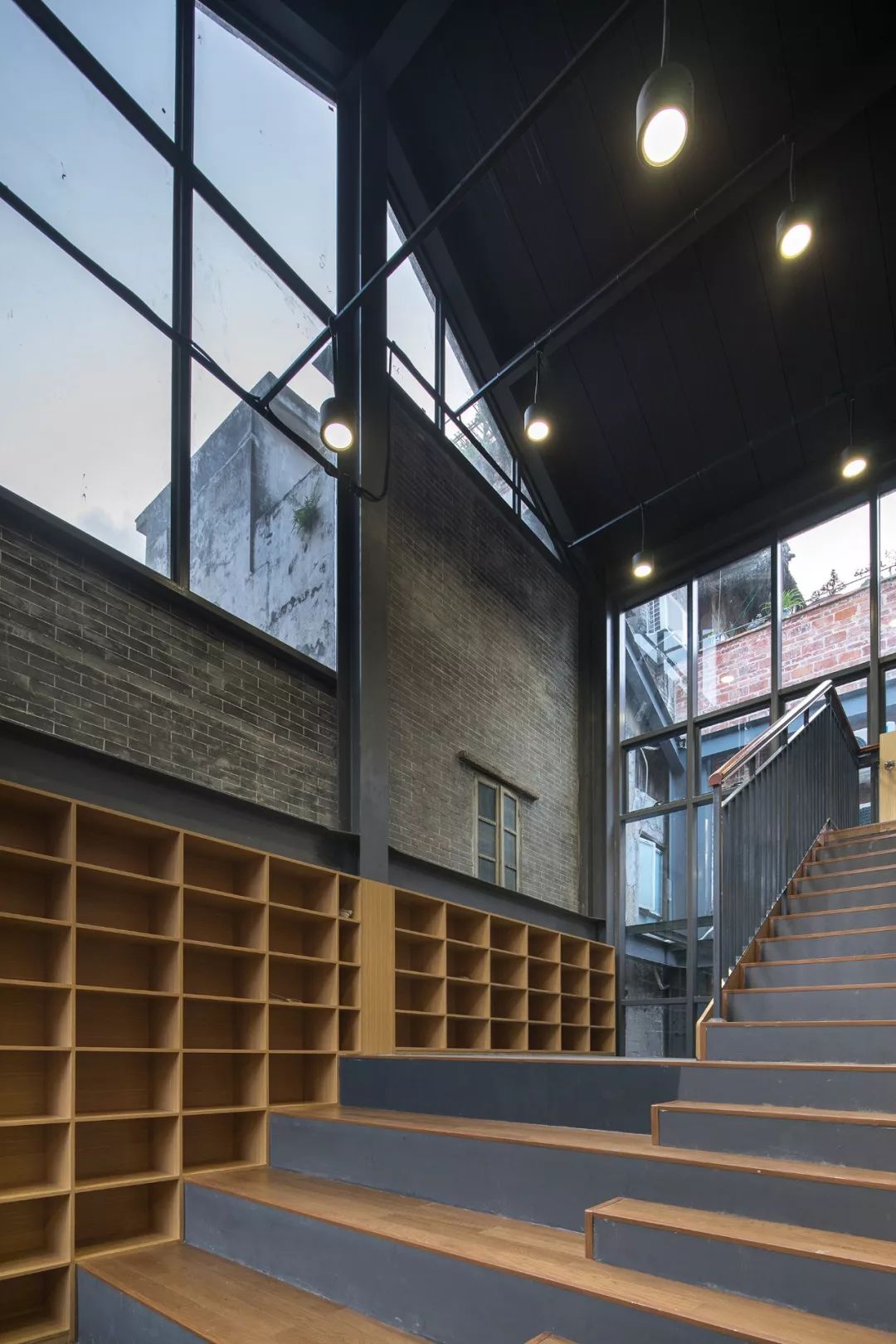 局部利用原建筑的旧红砖,还原对旧场所的记忆;尽可能保留珍贵的户外活动空间,通过公共大台阶承载丰富的公共活动,并利用大台阶在室内外空间之间形成连接和转换。