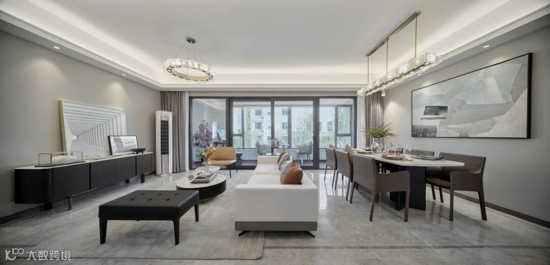 仁恒做了“洄游户型”,客厅、餐厅、厨房“十字洄游”,由于没有通道设置,大大提高空间利用率。厨房、餐厅、客厅、阳台,空间自由延展,让阳光与清风弥漫心间。