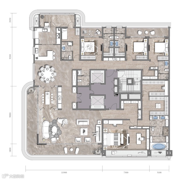 如今豪宅户型的人群有鲜明的特点:懂得享受、社交范围广、家庭的在他们心目中的比重越来越大。