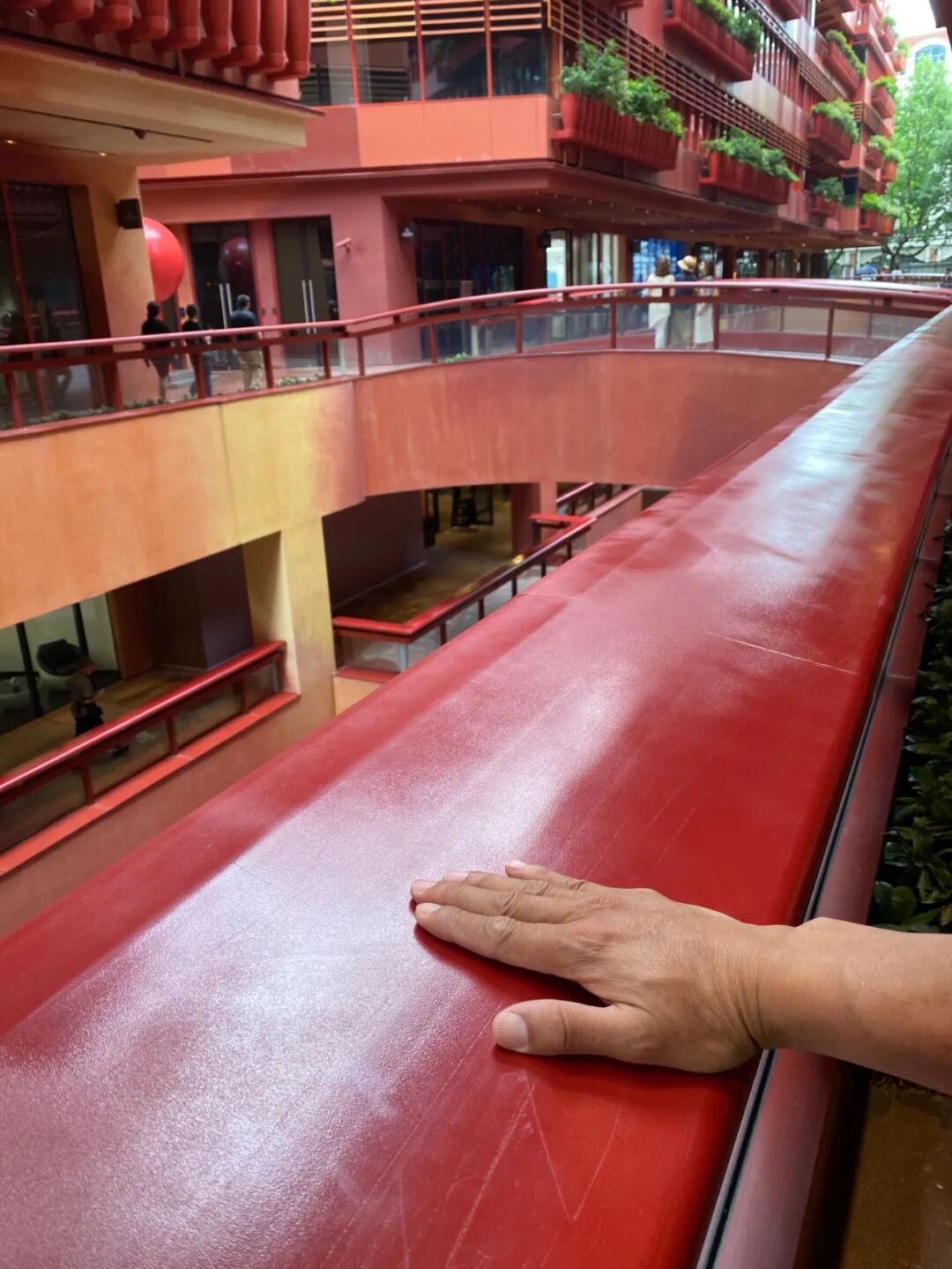 走廊的扶手很宽,很有安全感,而且既现代又经典。