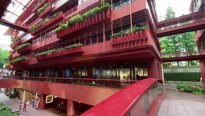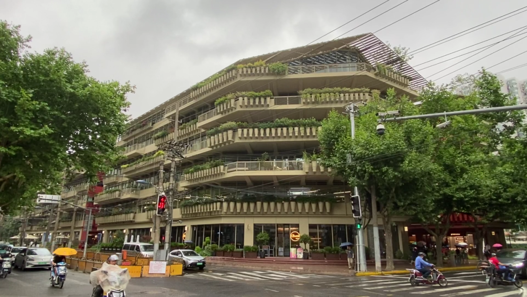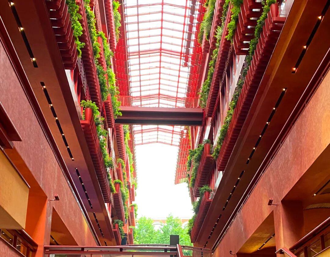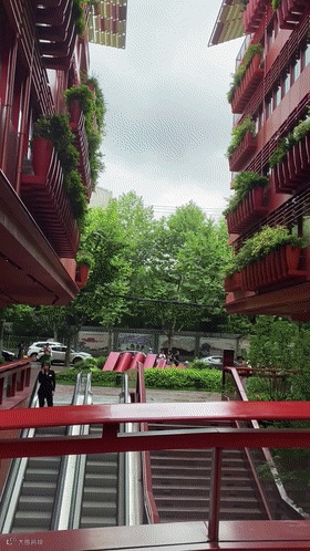 整个建筑不管是从外立面到内街区,花草、灌木和绿树无处不在,建筑外立面上的一个个花钵像极了上海老洋房阳台上种的花花草草,层层叠叠,营造一种“人在花园中,花园在城市中”的美好惬意之感。