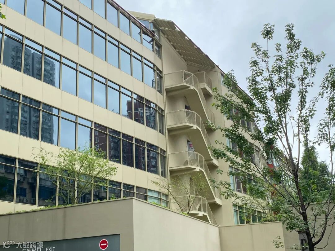 继续前行,不远处出现了一栋外墙是沙色+玻璃的建筑。