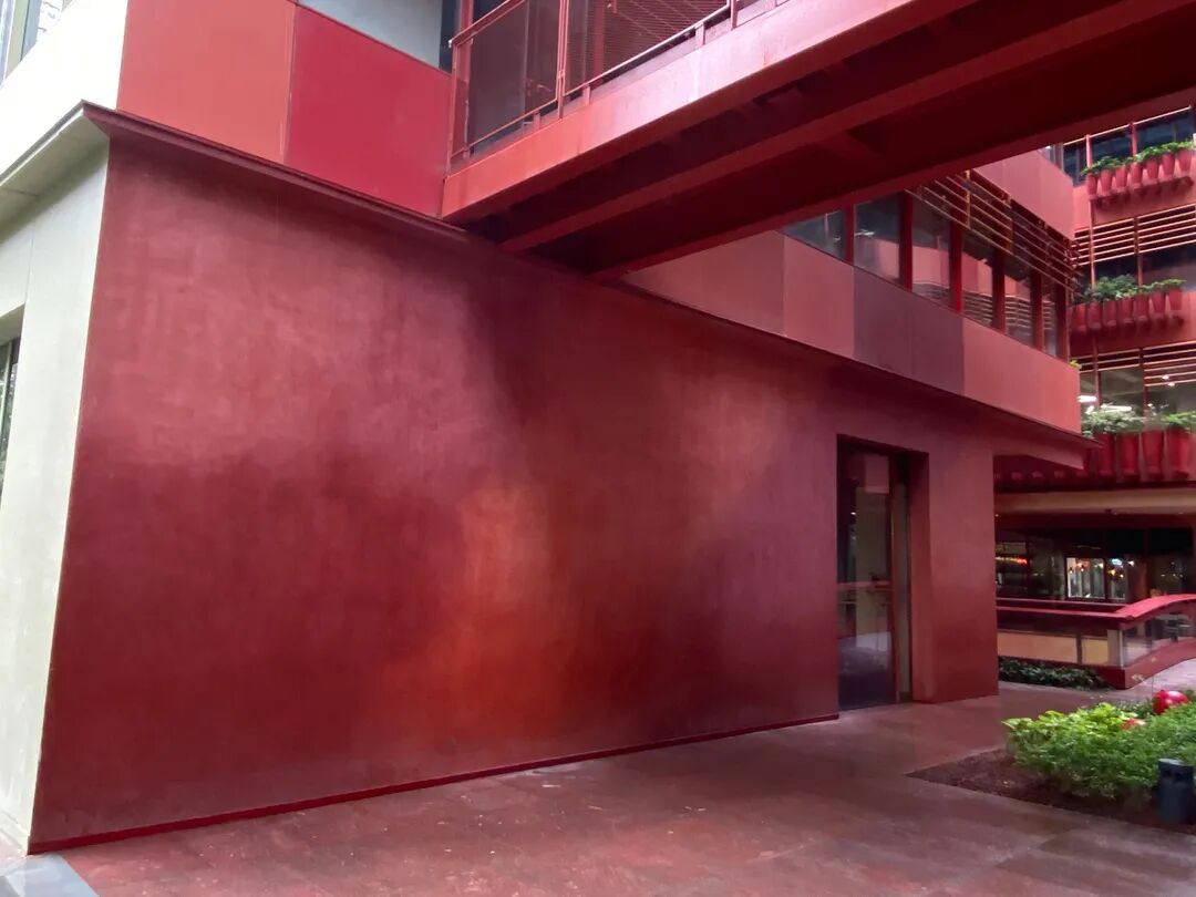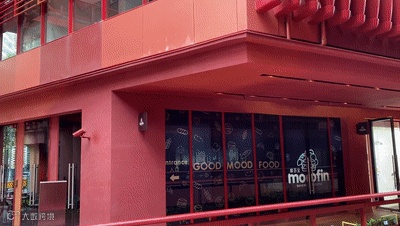 内街大胆张扬,运用15种不同色度的红色混搭在一起;