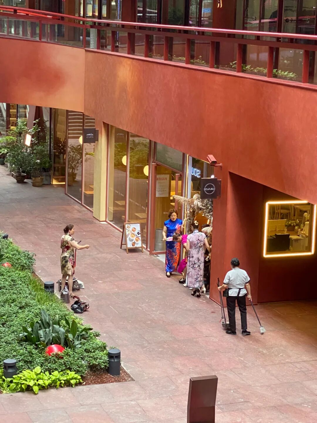 但是充满潮流的年轻人没看到几个,倒是看到了无处不在的旗袍阿姨在拍照打卡。