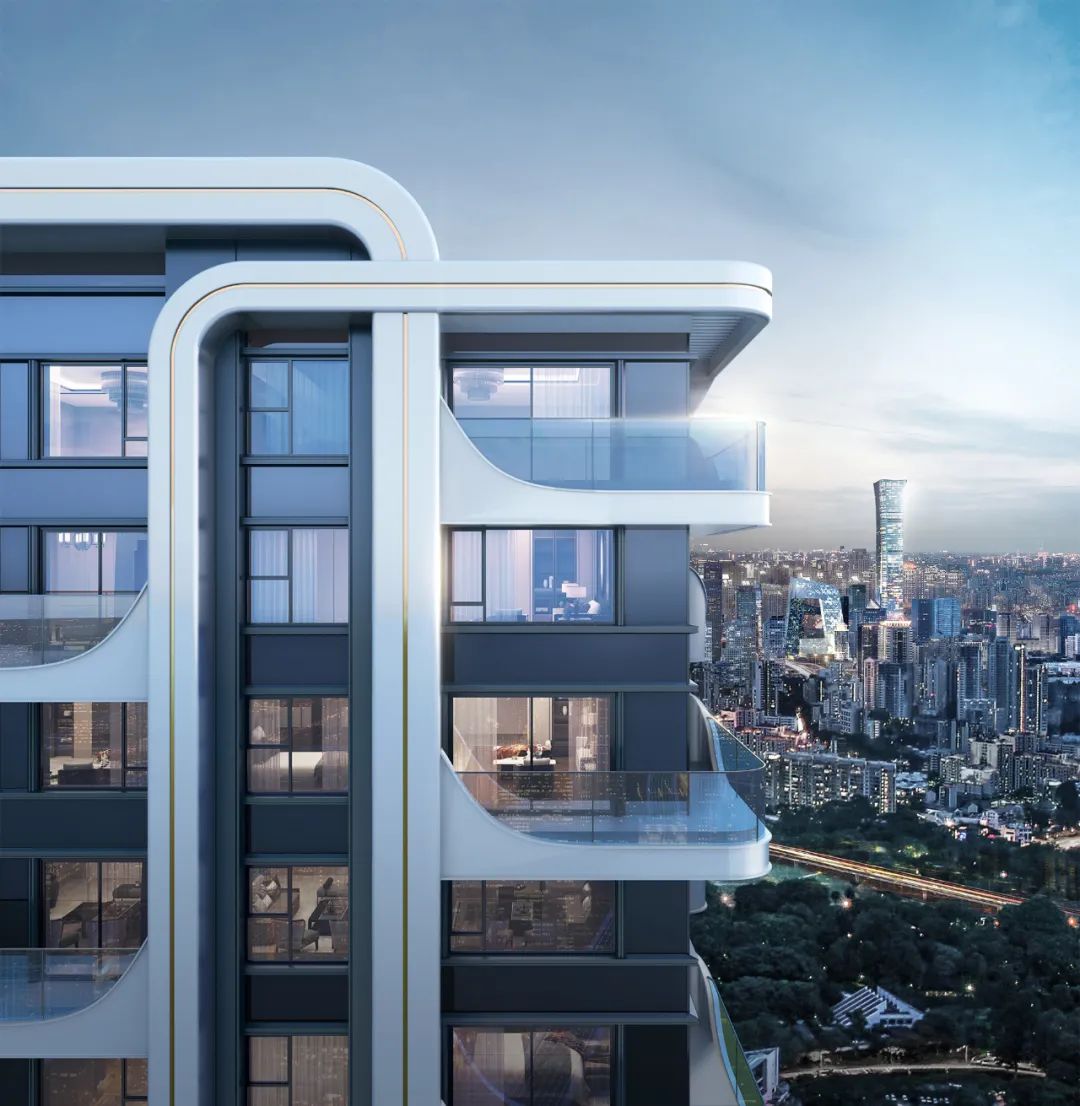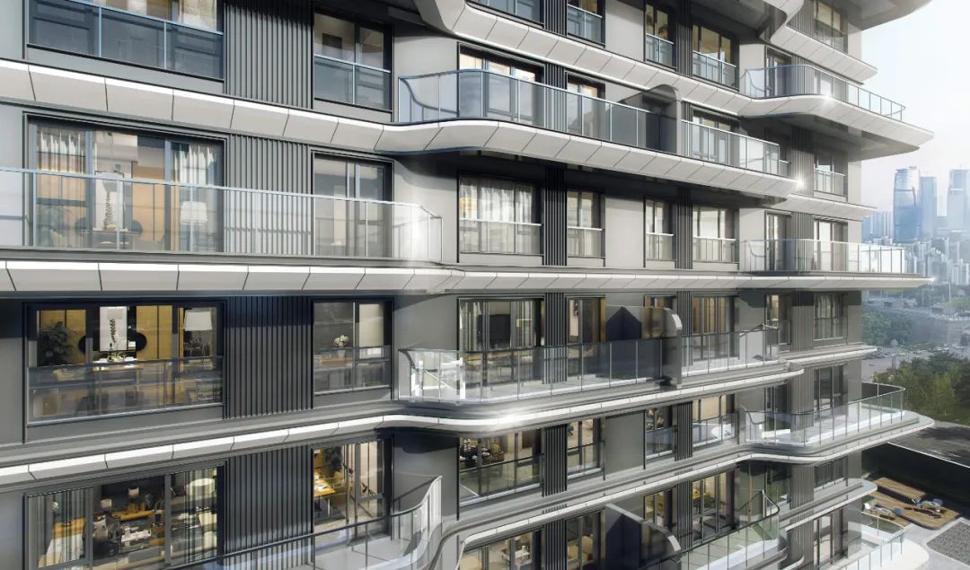 重庆融创壹号院,全隐框外窗,立面干净通透,采光和视野也得到更大程度的开放。