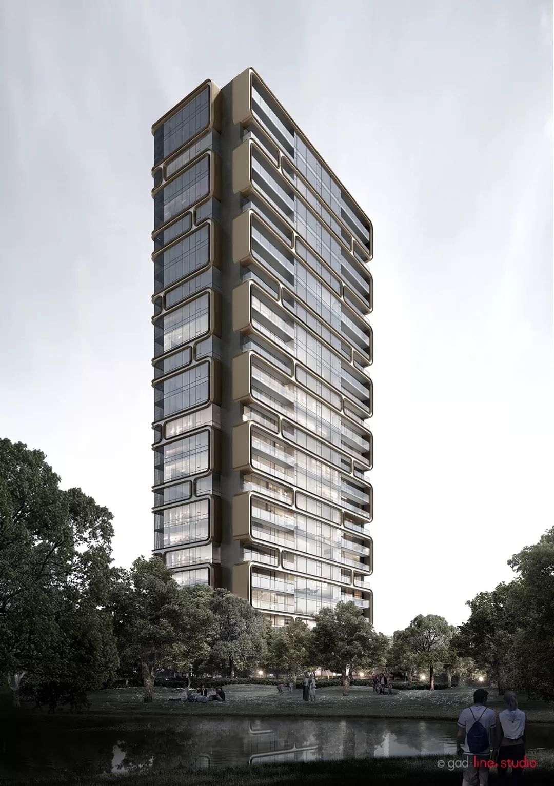 天津旭辉·滨海江来“微笑立面” 效果图 © 水石设计