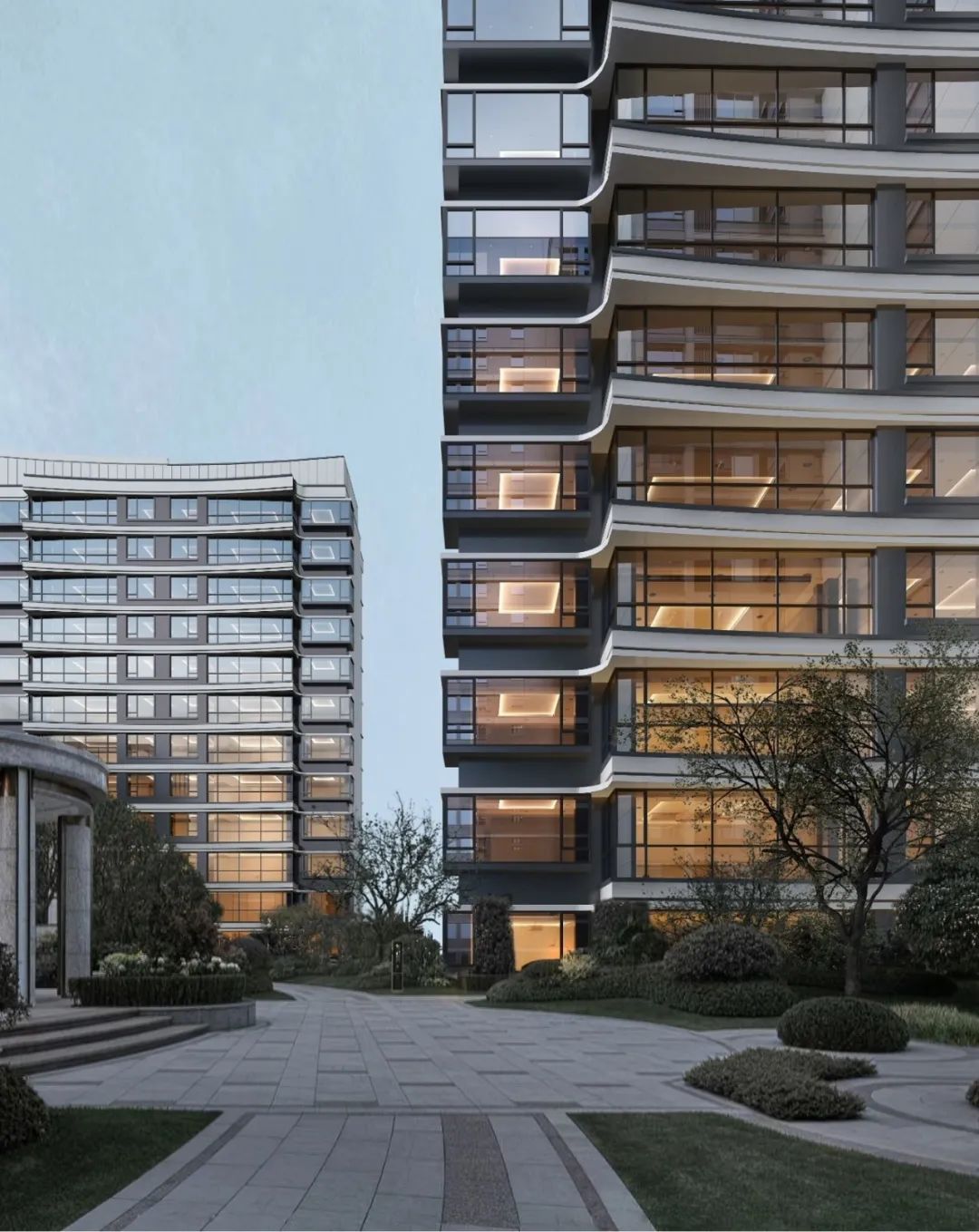 大量采用曲线与弧面,打造灵动流体立面,寻求建筑的柔软视觉观感。