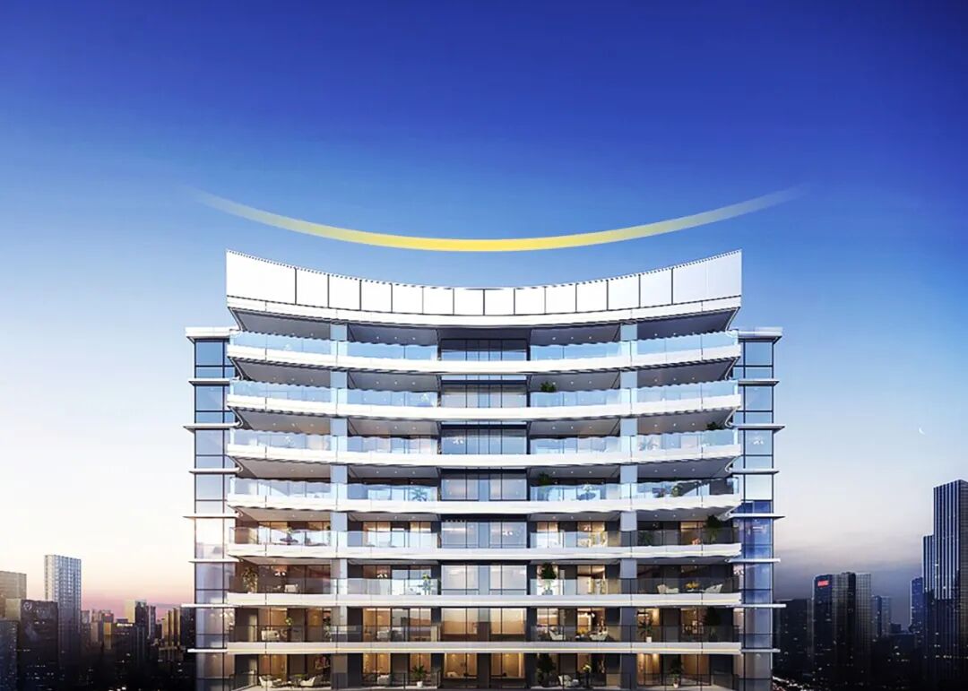 这条曲线仿佛是露着洁白牙齿的微笑,构成了建筑的天际线,从而成为建筑立面的一部分,在千篇一律的城市天际线中,旭辉用独具匠心的设计为城市天空送上一抹微笑。