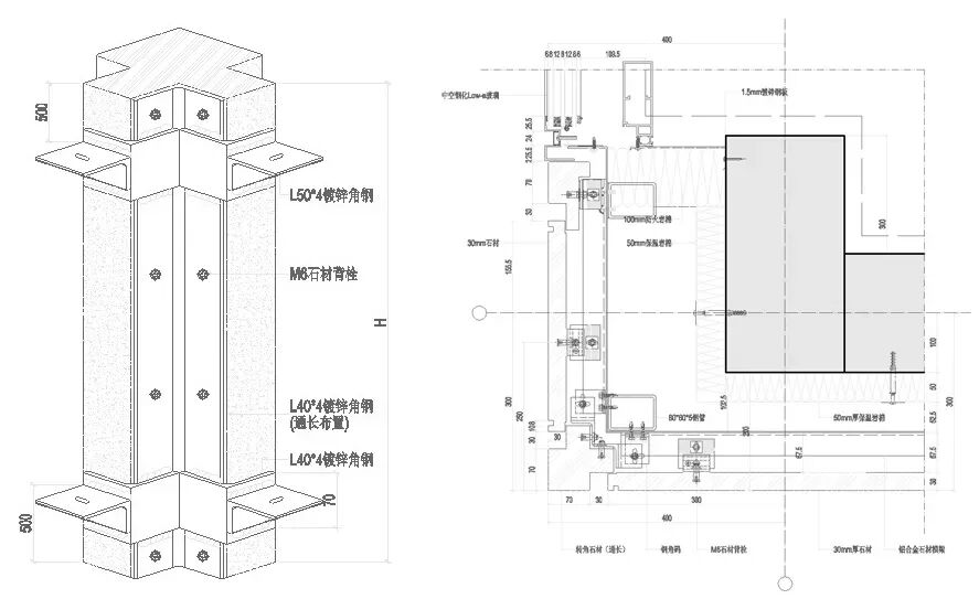 外立面需要12道工艺打造,玻璃幕墙与铝板幕墙为手动拼接。