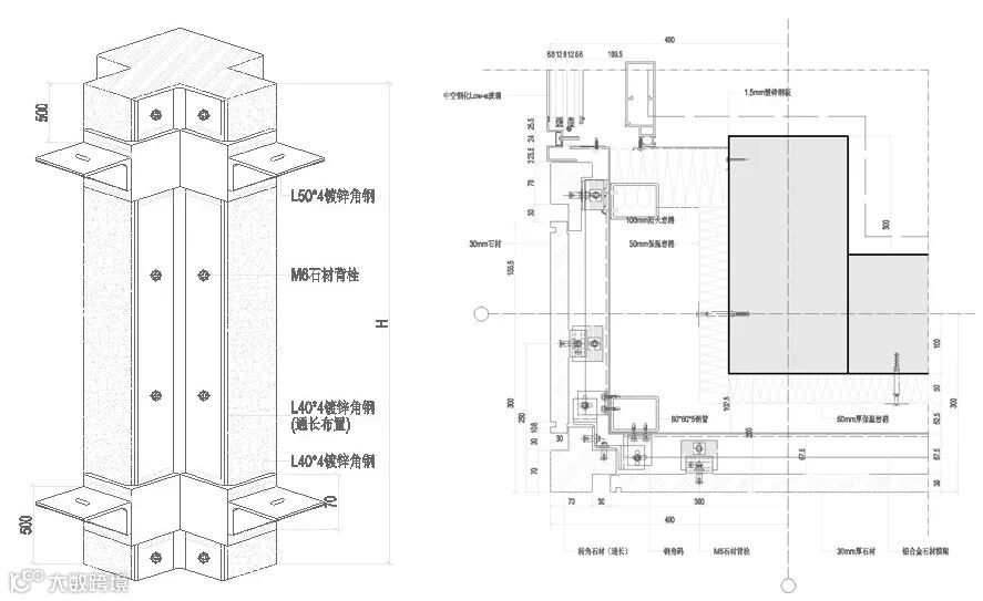 ② 玻璃+铝板+石材