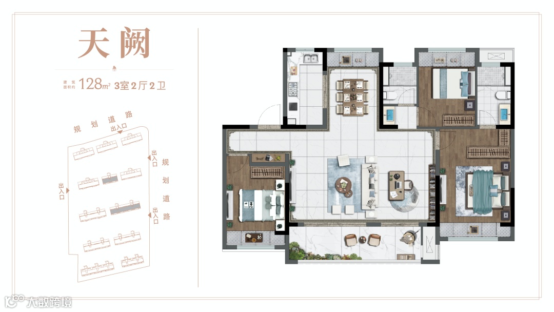 扬州龙湖锦麟天序建面约128㎡户型一大的亮点,就是超大横厅设计,面宽达到约7.2米,南向约14米大面宽,只有在140平以上的大平层里才能看得到,做出了豪宅大平层的尺度感!