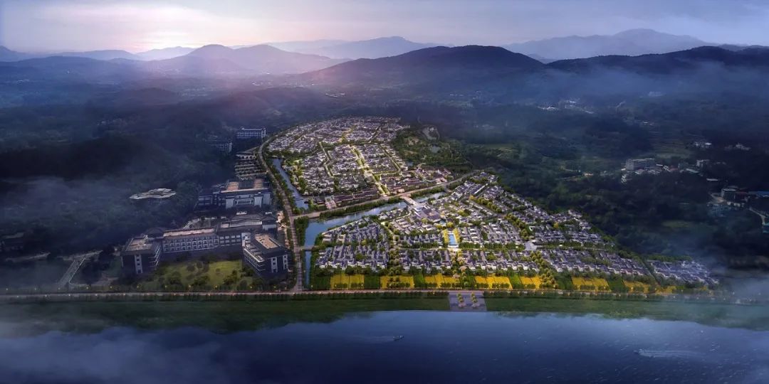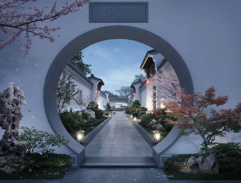 0.3的容积率,白墙黛瓦沿河错落布局,街巷、院落层层递进,引巴水入园境等诸多设计细节,呈现了安居、乐业、康养的诗意栖居。