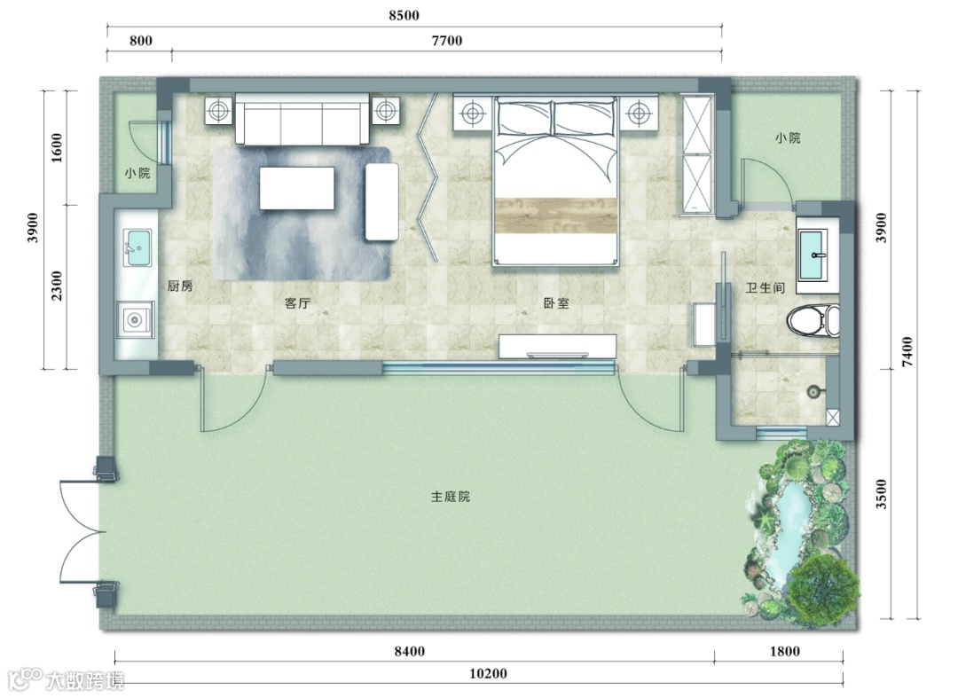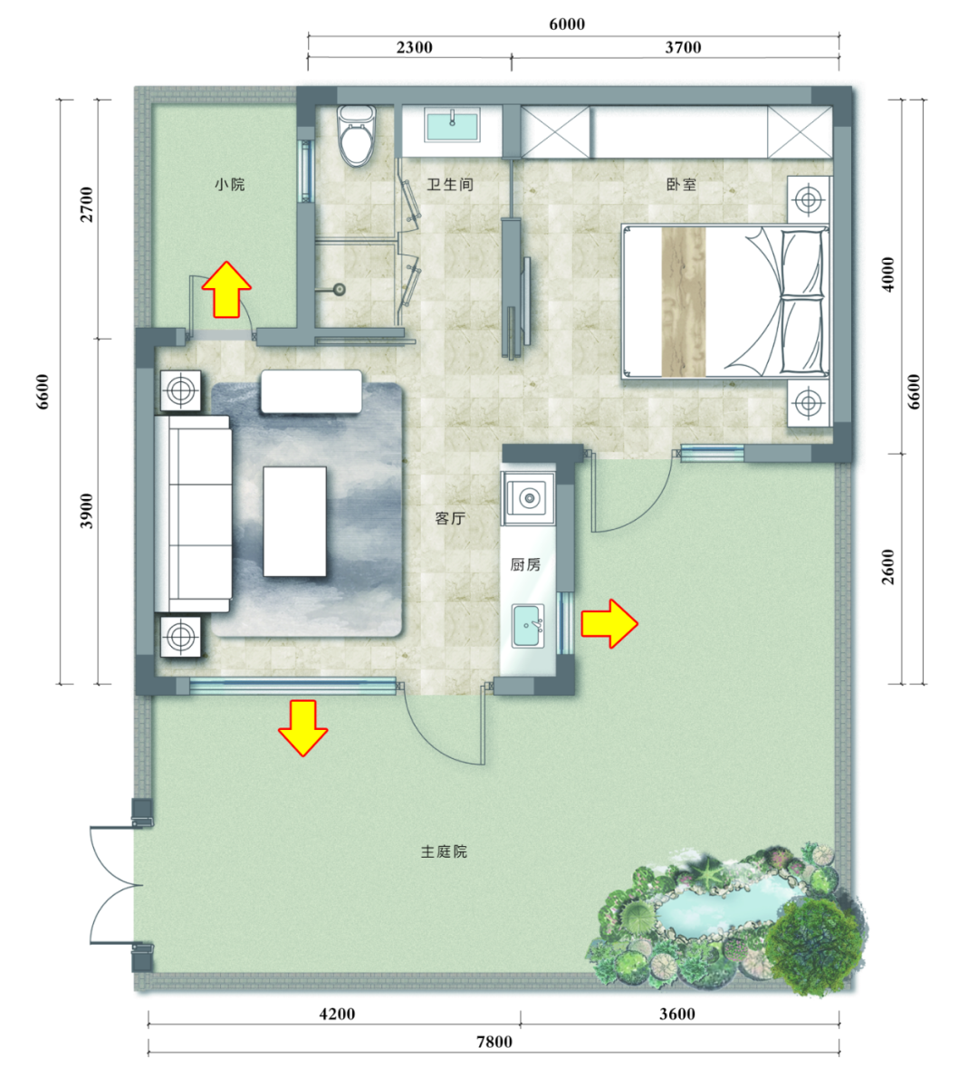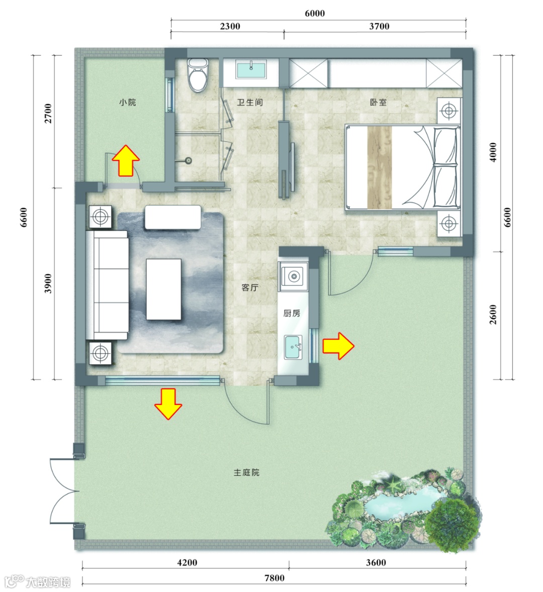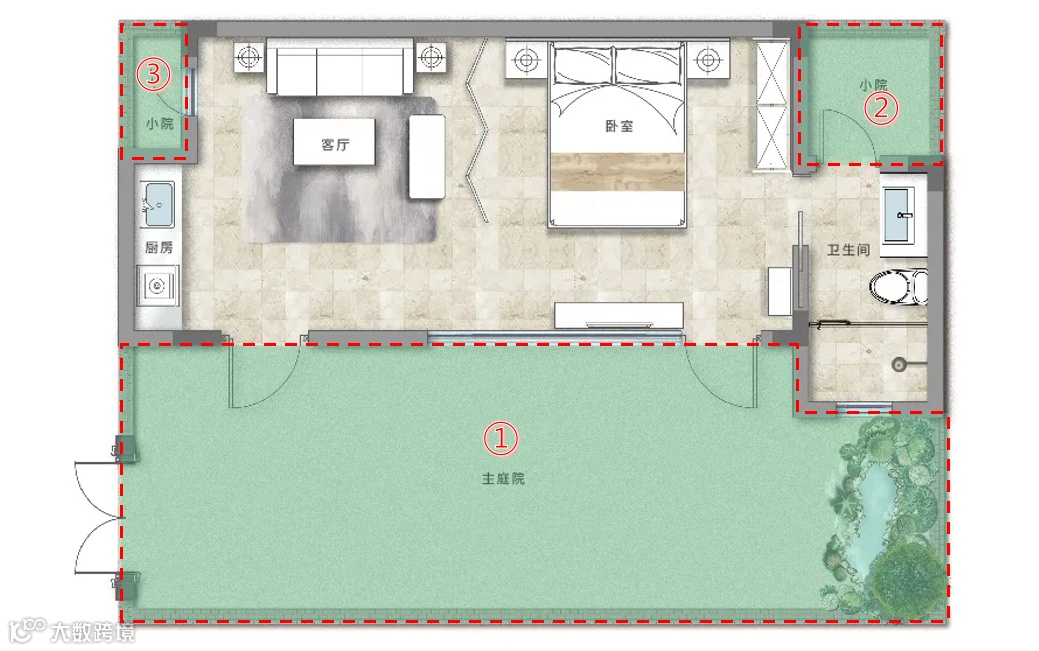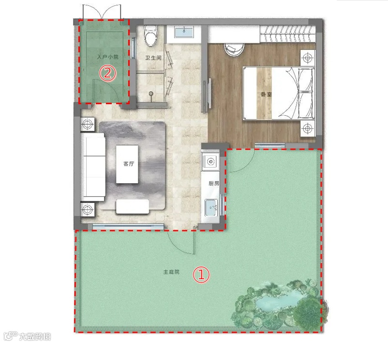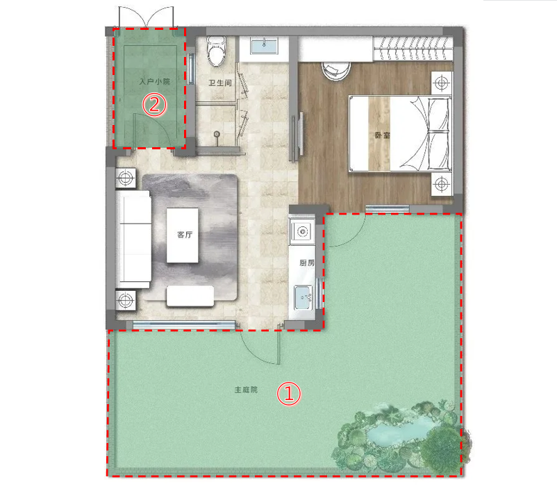 “有多大的房子,就有多大的院子”,这在市场同类产品中已是难得可贵,更别说这么小面积的产品了,竟然做到了1:1庭院赠送,0公摊、得房率高达200%,真是不敢想象。