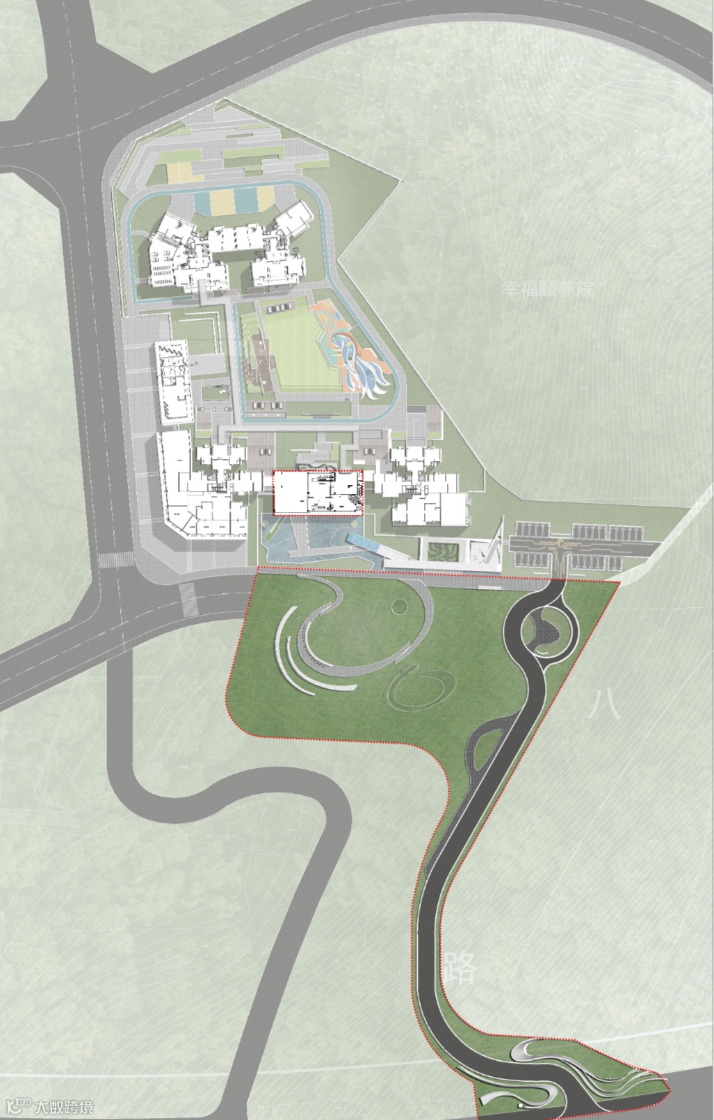 风雨连廊与环境融合呼应,景观设计保证了视野的宽阔性及建筑的整体美观。