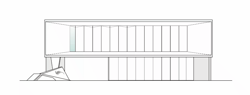 尺度合适的出挑能极大展现建筑的张力,尤其是在景观较好的地方,更具有视觉冲击力。在保证形体尽可能轻盈的情况下,结合结构和室内因素,做到最大悬挑2250mm。
