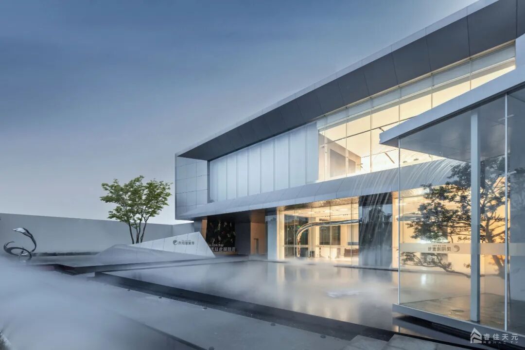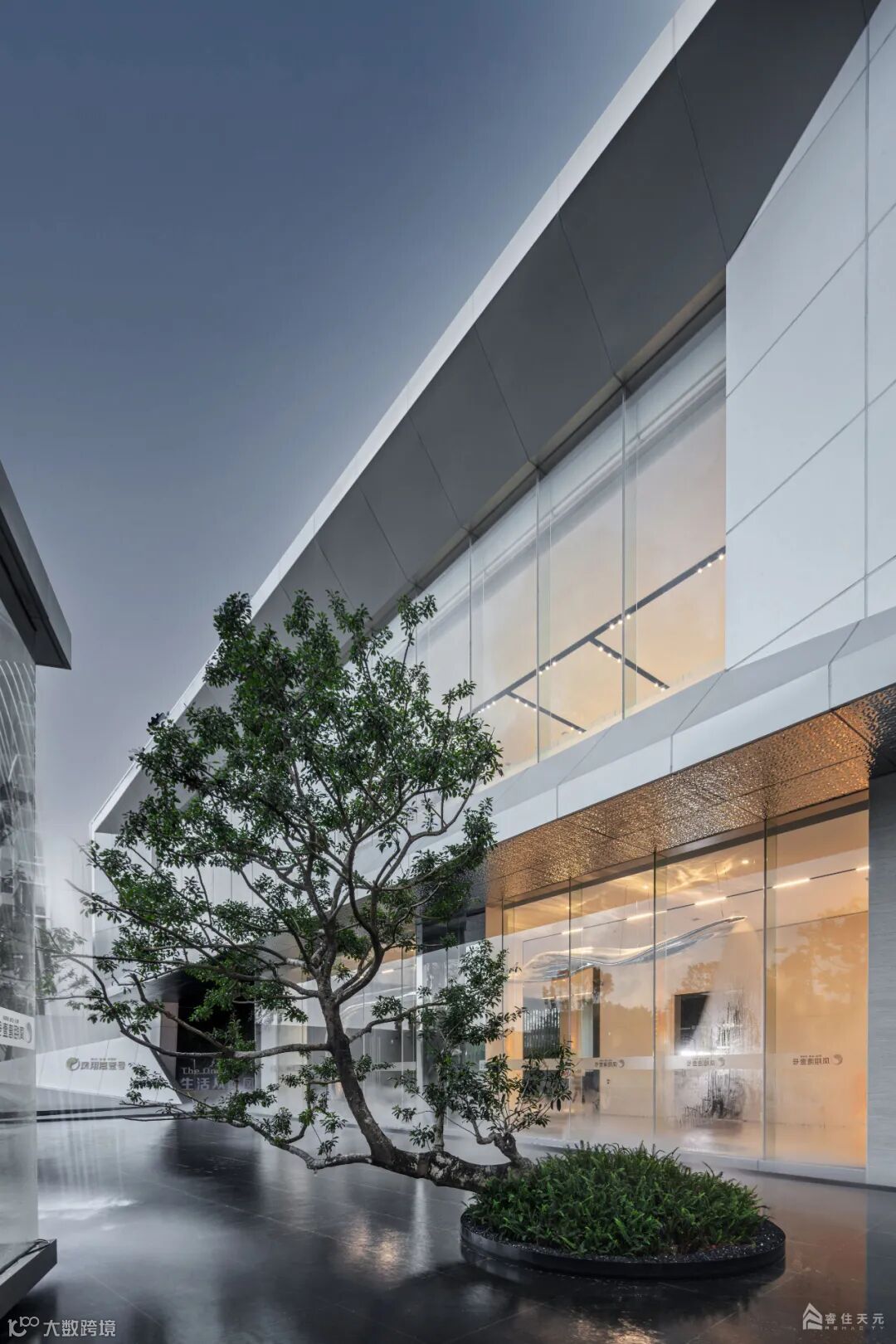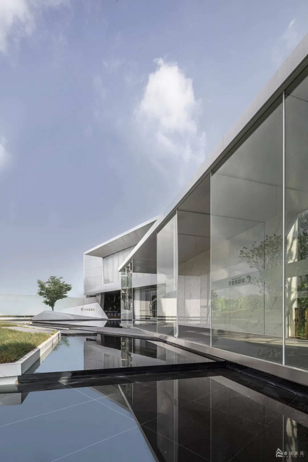 通过园游式的设计手法,引水入内,因地制宜的设计优化了沿路视线,通过对场景营造的深刻理解,从建筑构造、景观营建等多个委屈切入,将售楼部打造成建筑景观一体化的体验式场所。