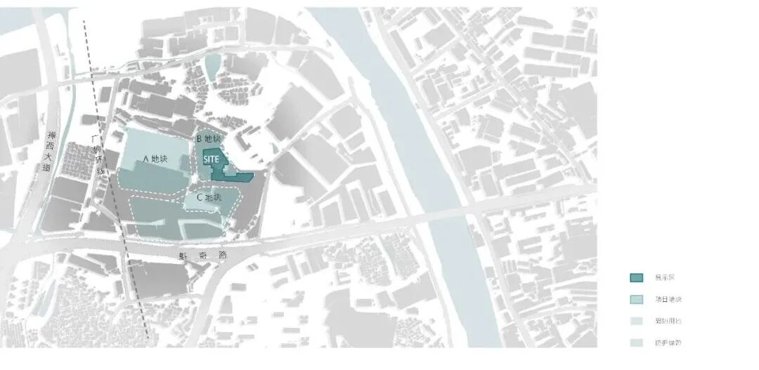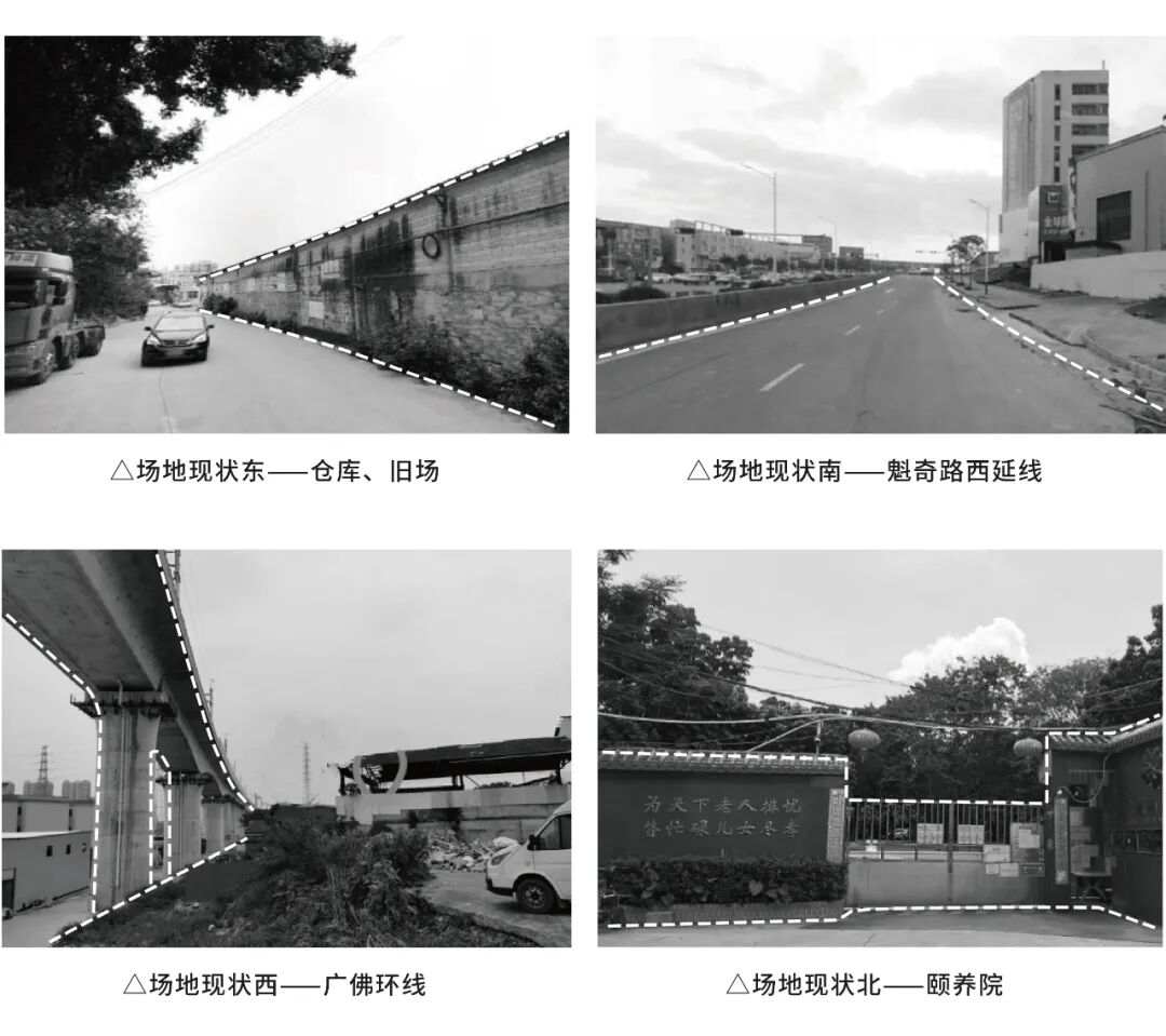新明珠凤翔湾项目由A\B\C三大地块组成,项目块地形平坦,局部高差大,禅西大道与魁奇路交汇,周边多为旧村和旧厂,展示区位于B地块南侧。
