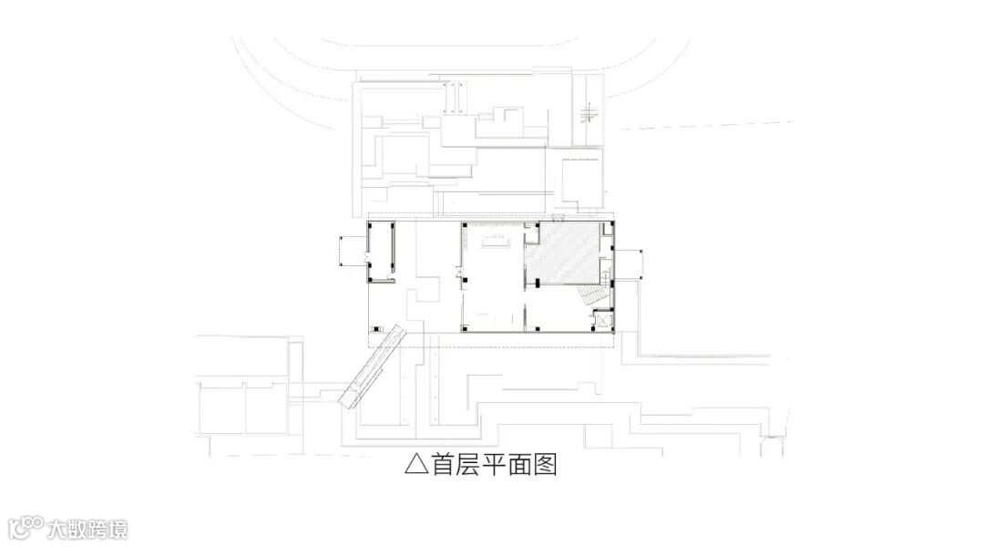 入口设计强调了仪式感,形成自然引导。同时以克制隐忍的处理方式,很好地保证了二层悬浮盒子完整性,呼应建筑主体,现代、纯粹、简单而有设计感的手法。