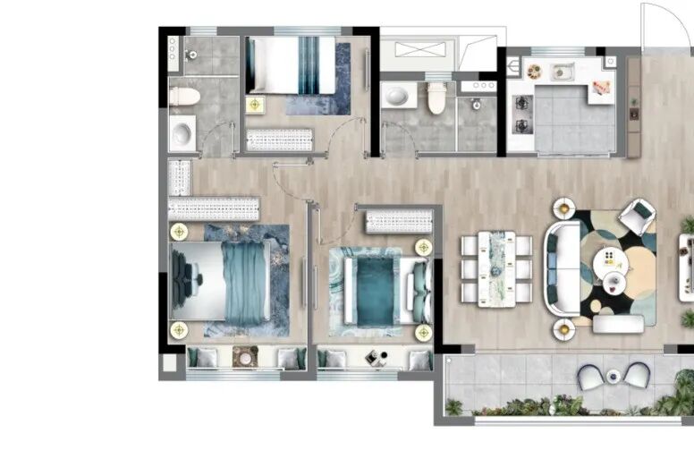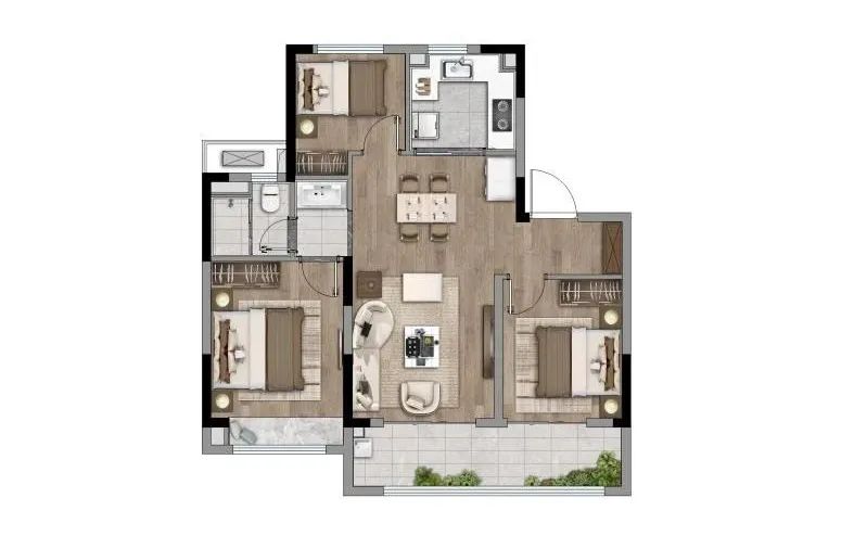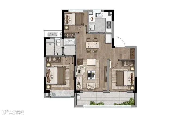 120㎡户型,格局方正,南北通透,三开间全部朝南向,更是独立电梯厅优雅入户,玄关空间兼得收纳收纳性与美观性。