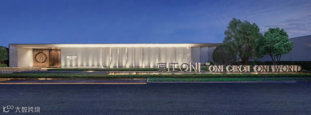 在示范区故事线的打造中,滨江ONE创意运用“O”的IP符号,在入口处设计了一座“O”型金属艺术装置,配合约33000片装置粒子,极具现代主义美学质感。
