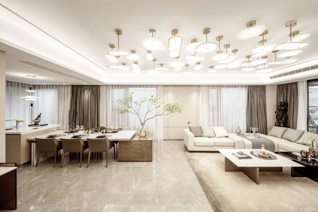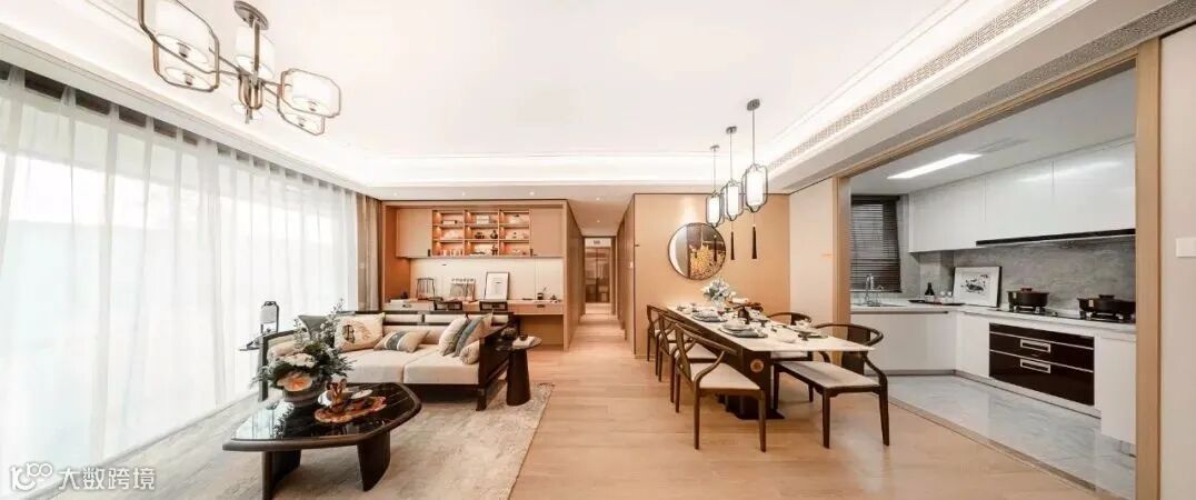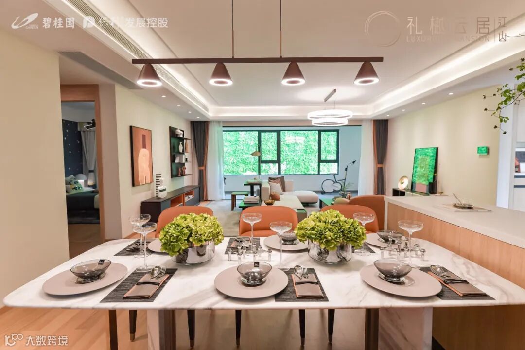 空间打造上,全端户规划,最大约15米观景宽面,模糊了室内外的空间界限,270°拥揽江景、城景、园景,开放式中西双厨,流畅料理空间,融入国际化生活方式。