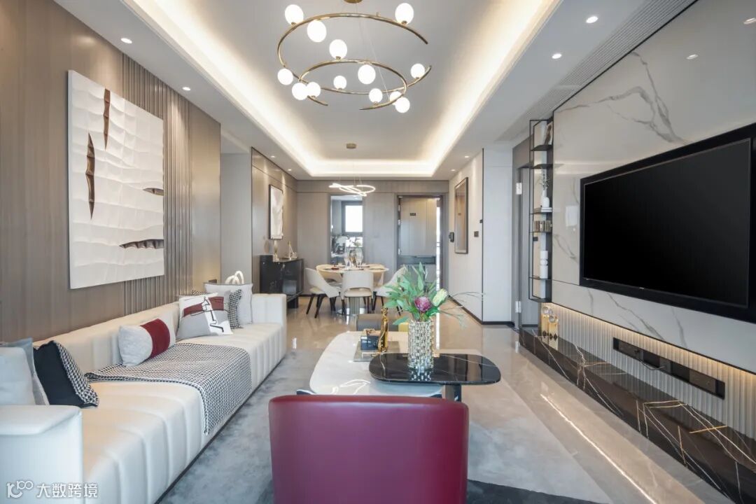 ▲美的&金茂•芳原|137㎡洋房客厅实景图