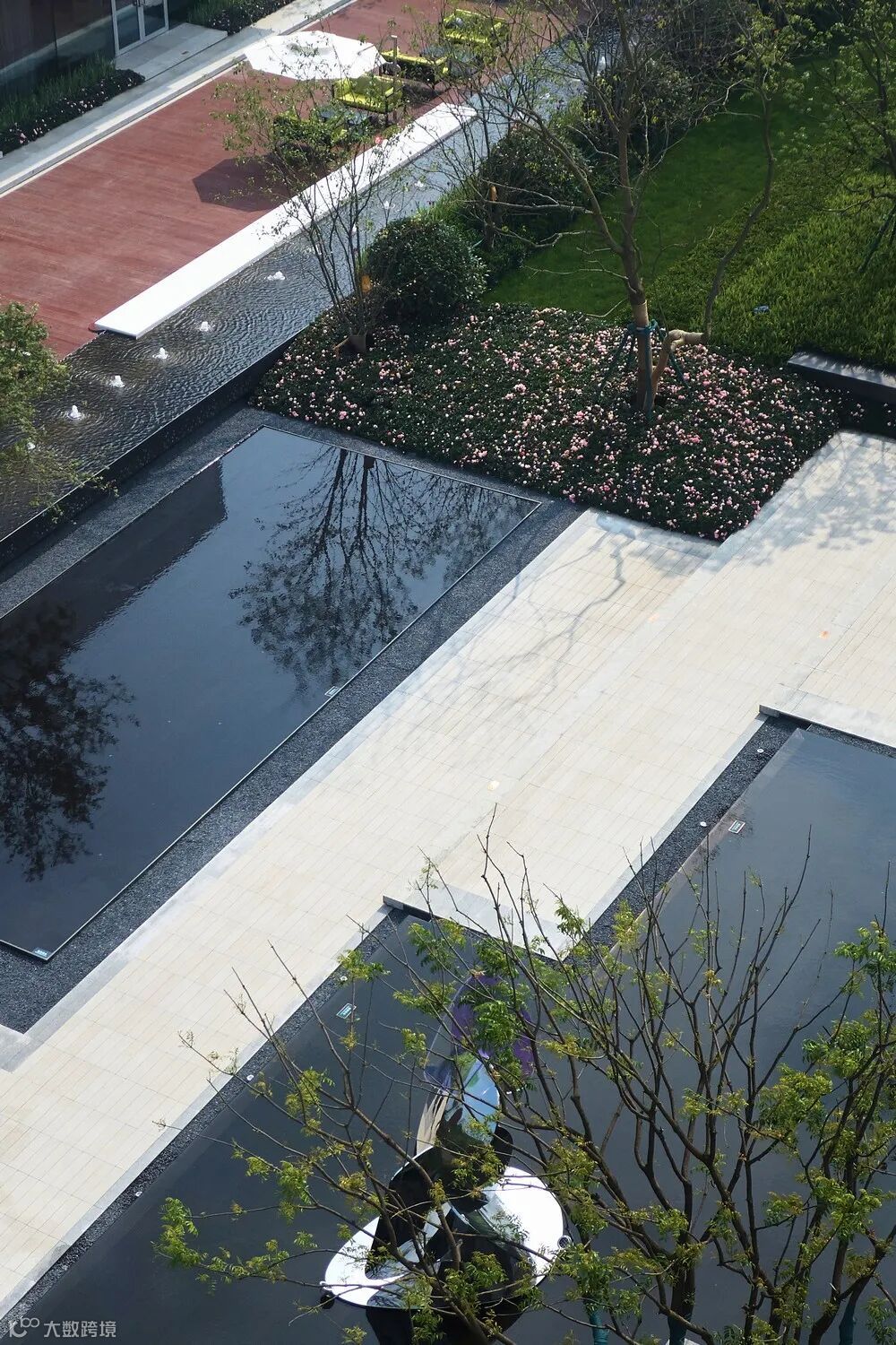 在水景的设计中,结合微地形,大量运用婉转的曲线,以叠水的动感塑造出流水潺潺的意境。中国古典的山水园林意境,在此以建发的方式,得以荣归。