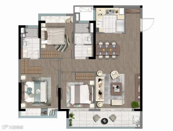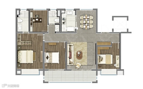 建筑面积约125㎡四房两厅两卫,全龄四室,三分离式卫浴,动静分离。