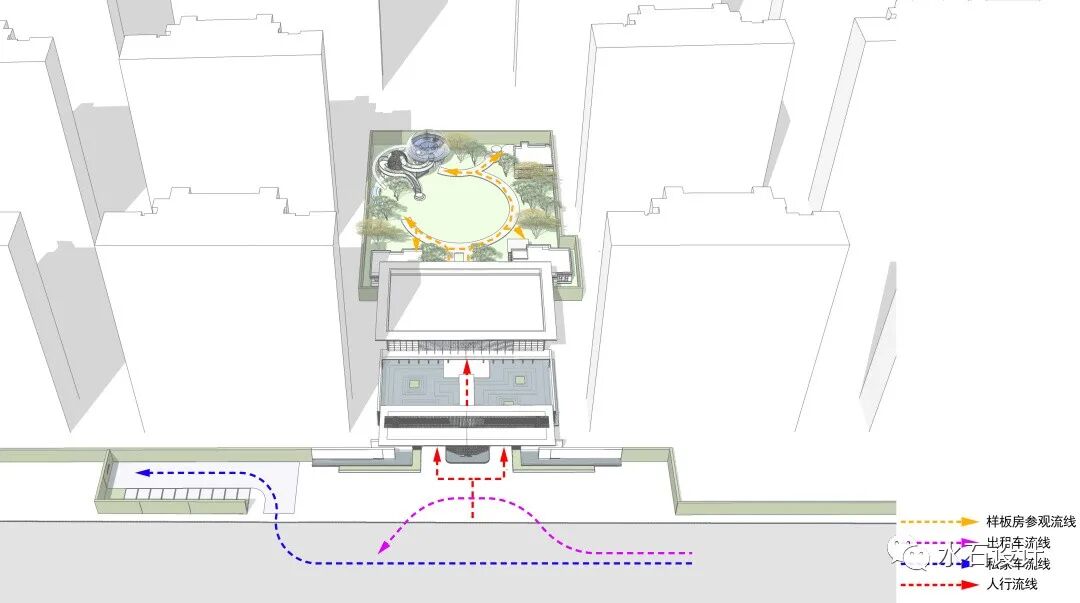 项目传承千年文脉礼序,从地域特性出发,提取“南京云锦”的编织纹理和“山水城林”的线性元素为主题,遵循“所见即所得”的理念,在小区主入口精心规制方圆门厅,后场落位童心树院模块,售楼处连接着前后场景观,呈现层层递进的礼序感,再现诗意栖居的当代绿洲生活。