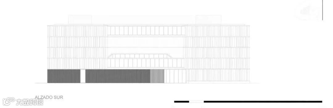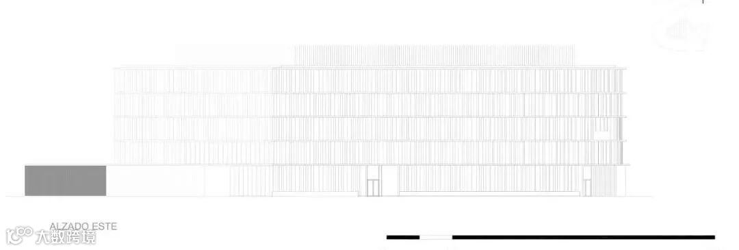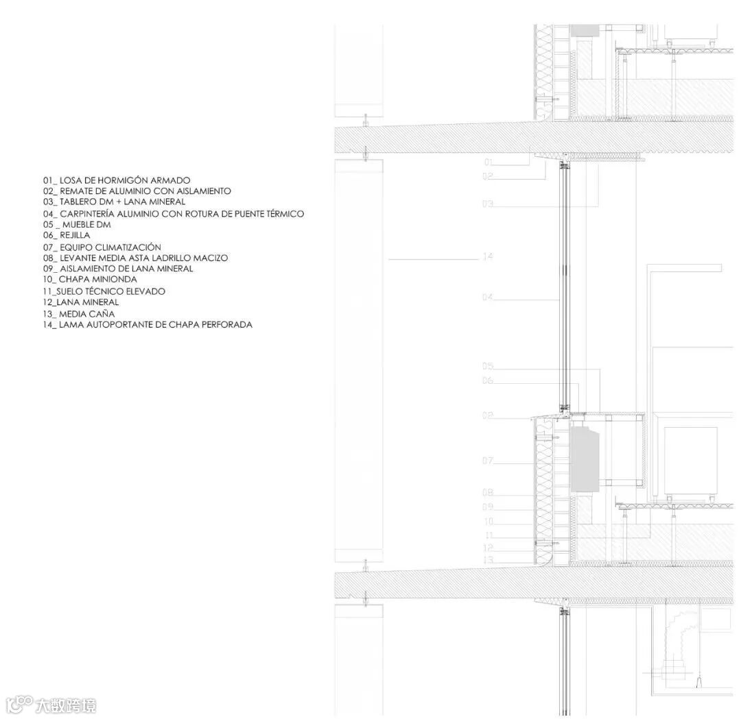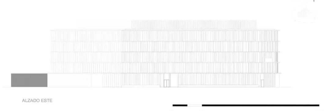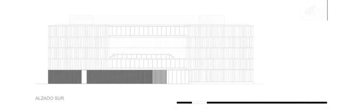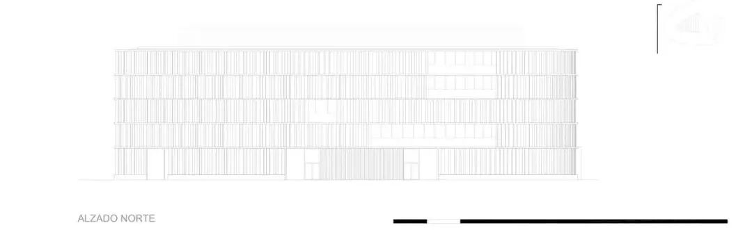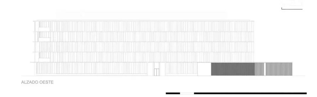 这种太阳能保护由两个系统完成:一方面是水平投影,另一方面是穿孔金属垂直板。这种太阳能保护同时产生了最终的图像,提供了丰富的光和暗组成,将建筑从其周围环境中识别并区分出来。
